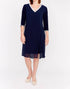 Meet the Knee-length Shift Knit Dress by Frank Lyman, a refined piece in elegant Midnight for formal and office occasions. This knee-length dress features three-quarter straight sleeves and a sophisticated V-neckline adorned with jewels. Crafted from 95% Polyester and 5% Elasthane, it offers a plain pattern and a comfortable fit with a back zipper closure. Made in Canada, this dress is approximately 40 inches (102 cm) in length and is designed for those who value timeless style. Care: Hand wash, lay flat to dry. Model is 5'9" (175 cm) and wears a size 6.