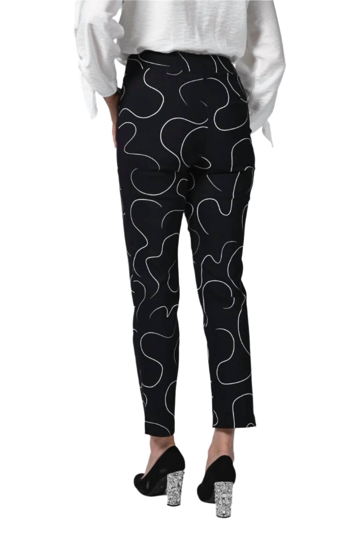 Elevate your travel wardrobe with the Pull On Ankle Pants by Frank Lyman, a stylish addition for any occasion. These high-rise, ankle-length, and patterned pants offer a sleek straight-leg silhouette, complete with pockets for added convenience. Crafted in Canada, they feature a comfortable pull-on closure and a fabric composition of 76% Rayon, 21% Nylon, and 3% Elastane for the perfect regular fit. Ideal for spring, these black pants are a staple for women seeking both fashion and function.