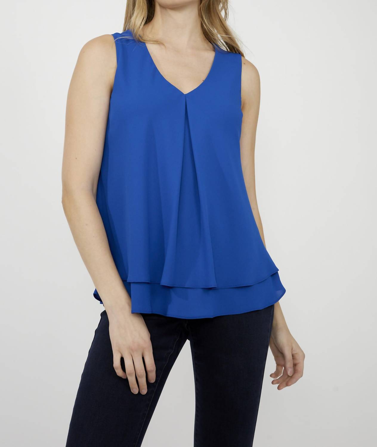 Apresentamos o Top Pulôver Sem Mangas com Decote em V da Frank Lyman, uma adição sofisticada a qualquer guarda-roupa em um tom azul deslumbrante. Confeccionado em 100% poliéster, este top com estampa lisa apresenta um decote em V estiloso e design em camadas, perfeito para coquetéis ou eventos casuais. Fechamento: Pull-On. Ideal para ocasiões de primavera, prepare-se para chamar a atenção com sua elegância elegante e despojada.