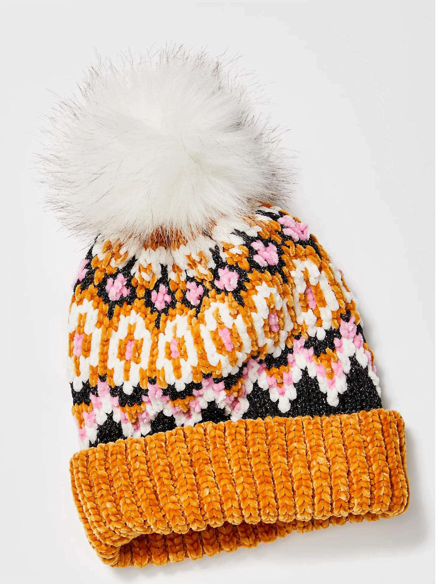 Elevate your cold weather wardrobe with the Chalet Fairisle Knit Winter Hat Beanie With Pom Pom by Free People. Crafted in a cozy knit material, this mustard combo beanie features a chunky knit fabrication and slouchy silhouette, complete with an oversized faux fur pom and ribbed cuff. Its fair isle print adds a touch of charm, making it a chic addition to any outfit. Imported for the ultimate in warmth and style.