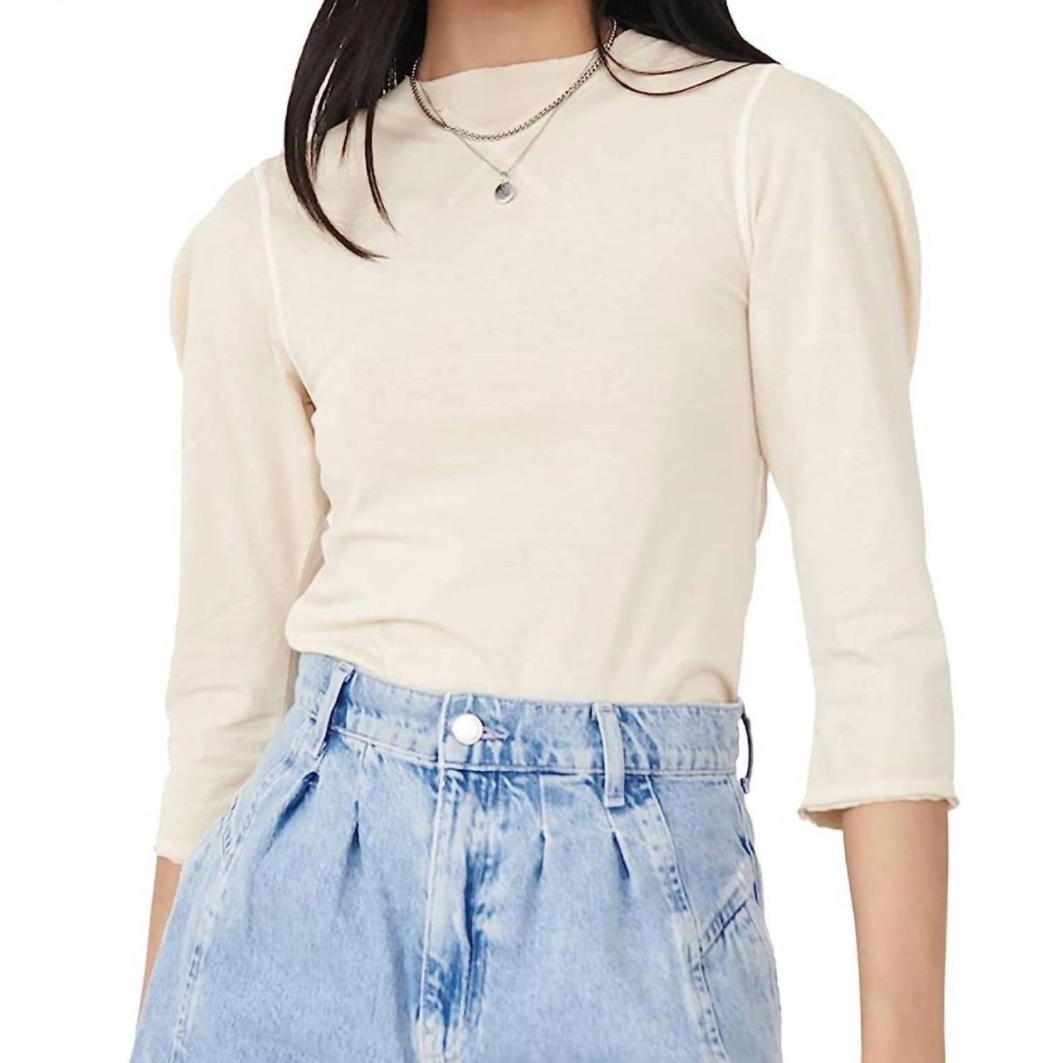 Introducing the Clover Puff Shoulder Tee by Free People, an essential addition to any woman's wardrobe in a versatile oatmeal shade. Crafted from breathable cotton, it features playful three-quarter sleeves with subtle pleated shoulder details and a classic crewneck. The solid pattern and pull-on closure make it ideal for layering, maintaining a minimalist vibe perfect for summer vacations. Care instructions suggest machine wash, ensuring easy maintenance.