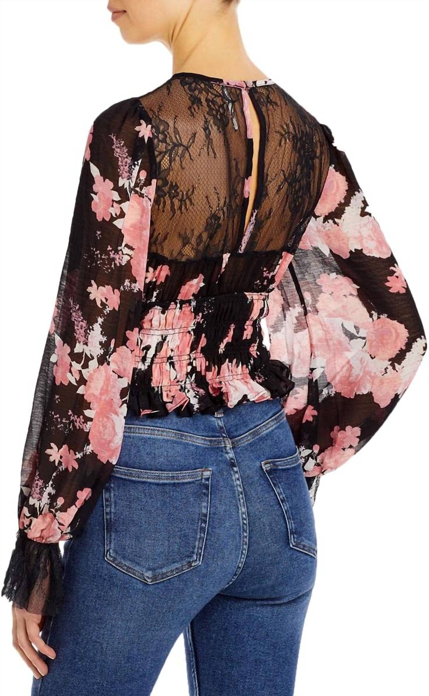Combine isso com seus jeans e chinelos favoritos para sua próxima noite entre amigas. Abrace a elegância atemporal com a Blusa Daphne da Free People na cor Midnight Combo, adornada com uma delicada estampa floral. Esta blusa de manga comprida apresenta punhos de renda intrincados e um fecho de encaixe nas costas, realçando seu charme feminino. Confeccionada em 100% poliéster, apresenta um corte cropped com 48 cm de comprimento, ideal para combinar com suas peças favoritas de cintura alta. Cuidados: Lavar à máquina com água fria para facilitar a manutenção.