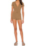 Upgrade your loungewear with the Early Night V-neck Romper by Free People, featured in a soft Washed Army hue. This textured, 60% Cotton, 40% Polyester piece showcases a slim, fitted silhouette with a cheeky shorts design and a stylish V-neckline. Enjoy the comfort of its pull-on closure and the added texture of its thermal waffle knit. Care is effortless: simply hand wash and line dry.