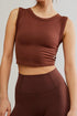 Introducing the Free Throw Muscle Tank by Free People, a chic addition to your wardrobe in a rich Black Walnut hue. This tank is sleeveless and features a cropped, muscle-style silhouette with ribbed knit detailing and a slight scoop neckline. Crafted from a nylon blend, it offers a compressive and stretchy feel, perfect for fitness or a minimalist summer look. With a convenient pull-on design, it is easy to wear, and can be machine washed for fuss-free care.