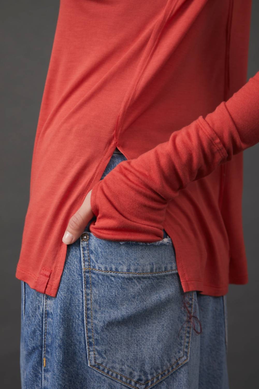 Blusa leve de manga comprida vermelha vibrante. Adorável como uma camada ou simplesmente usada sozinha, esta camiseta eternamente atemporal apresenta um corte clássico de manga comprida com costuras aparentes e fendas laterais na parte inferior para maior modelagem. Decote redondo. Bolso frontal aplicado. Detalhe de abertura para o polegar. Lavagem à máquina com água fria em temperatura suave. Medidas para tamanho pequeno: Busto: 95 cm. Comprimento: 70 cm. Comprimento da manga: 70 cm. 100% viscose. Forro: 96% viscose, 4% elastano.