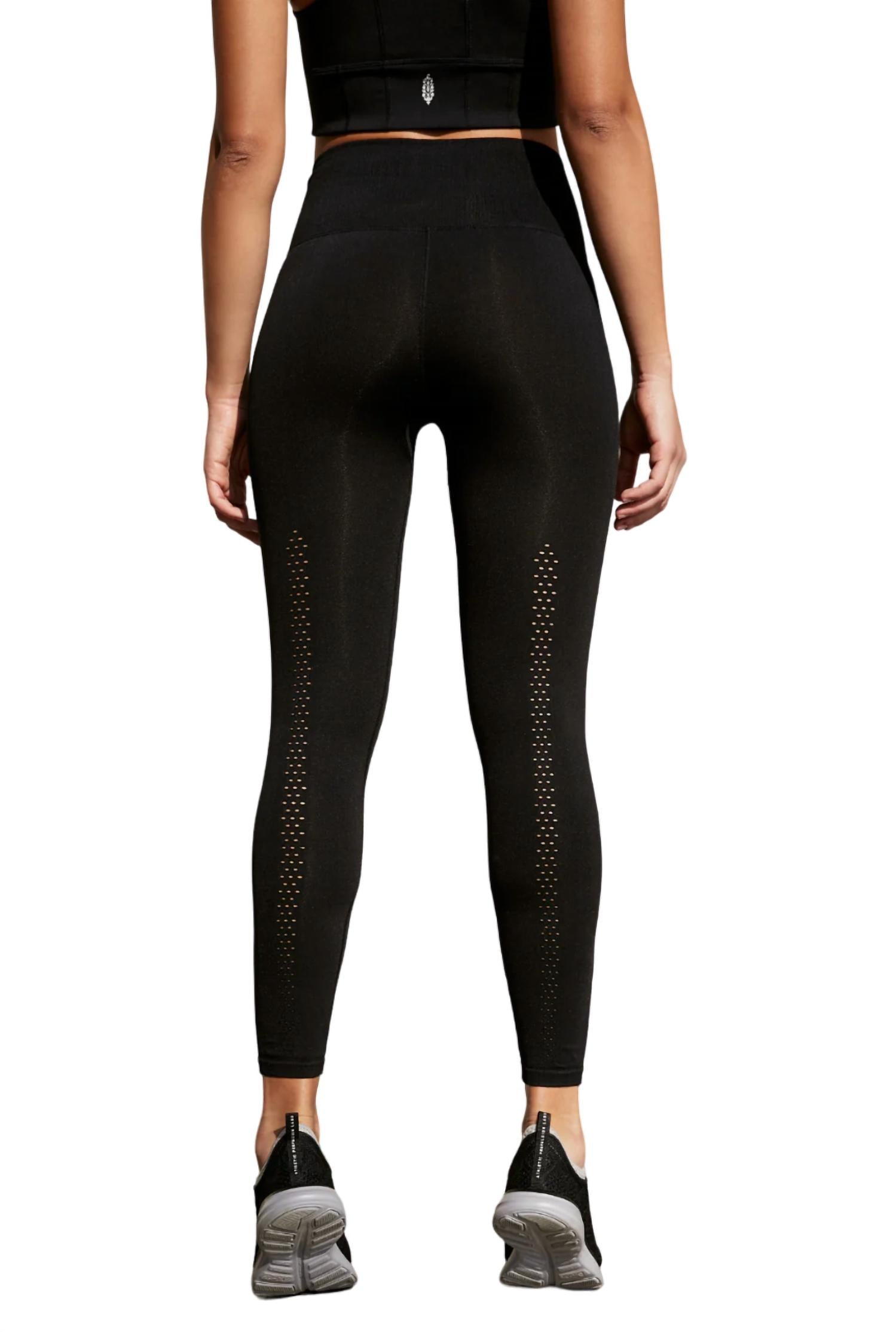 Cintura alta, comprimento total da perna. Cintura supermacia e firme, com cós canelado exclusivo. Detalhes em furos respiráveis. Proteção UV FPS 30. Lavagem à máquina com água fria. Fabricado nos EUA.