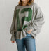 Slouchy, relaxed fit. Varsity-inspired number graphic at front. Long sleeves. Worn, lived-in look.
