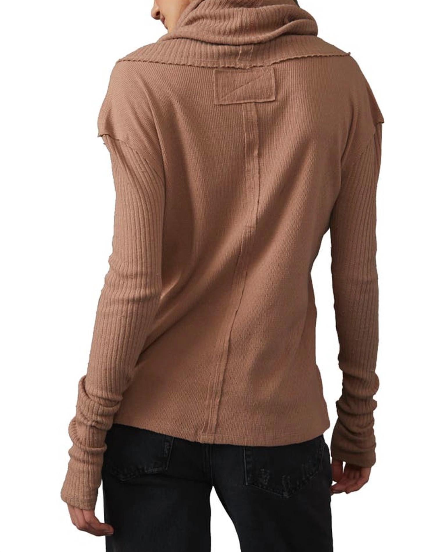 Crafted from hemp and organic cotton, this cozy knit pullover features brand-signature exposed seams and a drapey cowl neckline. Fabric: 100% Cotton. Machine wash. True to size. 25" length (size Medium).