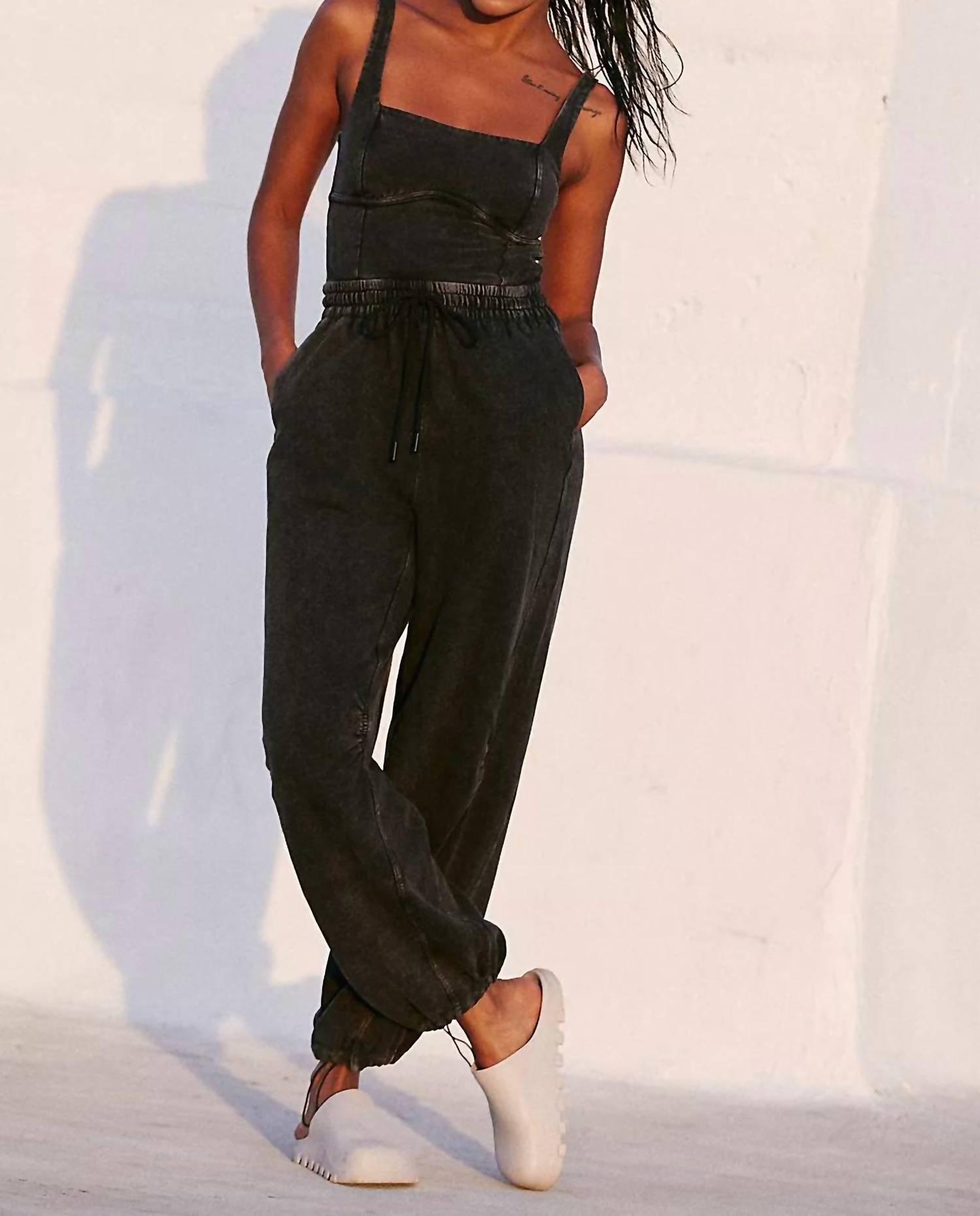 Elevate your comfort with the Inbound Onesie by Free People, crafted in a soft cotton blend. This Skyline toned romper offers a relaxed fit, featuring a fitted top, full-length tapered legs, and a stylish square neckline. Design highlights include large side pockets, knee ruching, elastic ankle cuffs, and an adjustable tie closure at the waistband. Care is easy with machine washable fabric, making it perfect for minimalist, vacation-ready looks. Model is wearing a medium (5'8" height, 36.5" chest, 31" waist, 42" hip, 30" inseam).