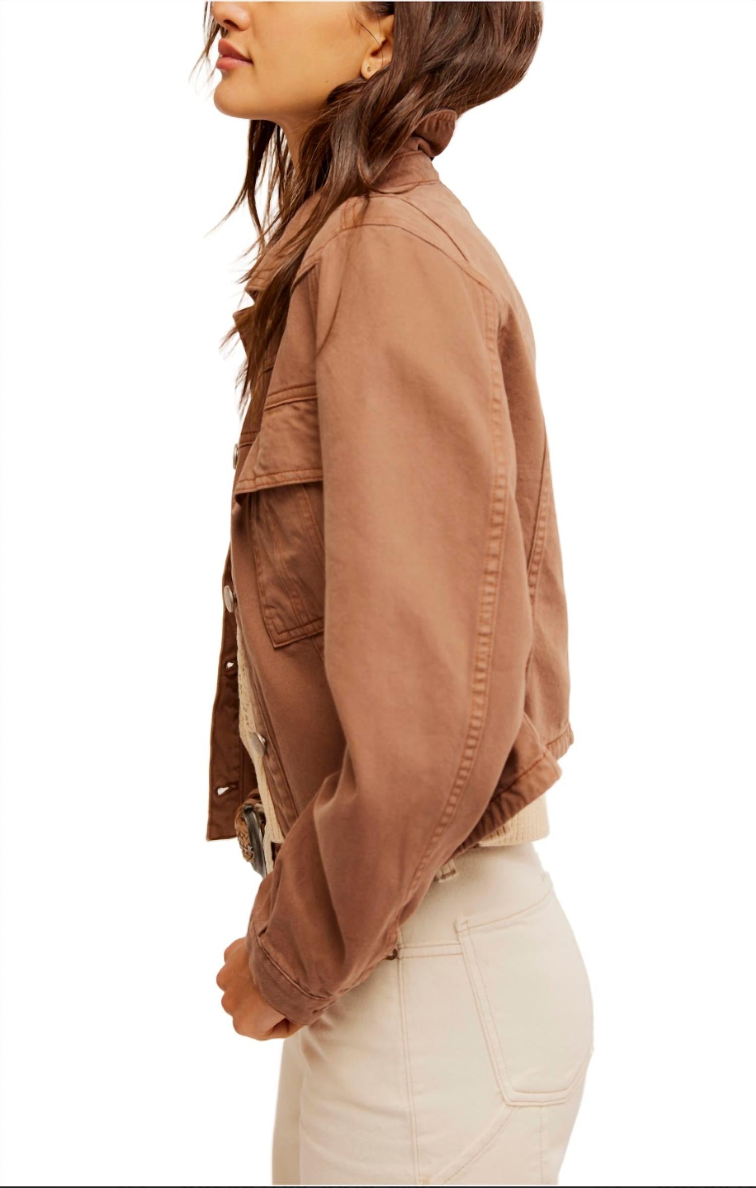 A Jaqueta Jeans Jade da Free People oferece uma combinação perfeita de textura e estilo atemporal em uma cor rica em mousse de chocolate. Esta jaqueta jeans de manga longa é confeccionada em algodão premium, garantindo conforto e durabilidade. Seu fecho de botão e gola alta realçam seu visual clássico, enquanto os bolsos laterais adicionam um toque de praticidade. Ideal para qualquer passeio casual, esta jaqueta confere um toque chique ao seu look.