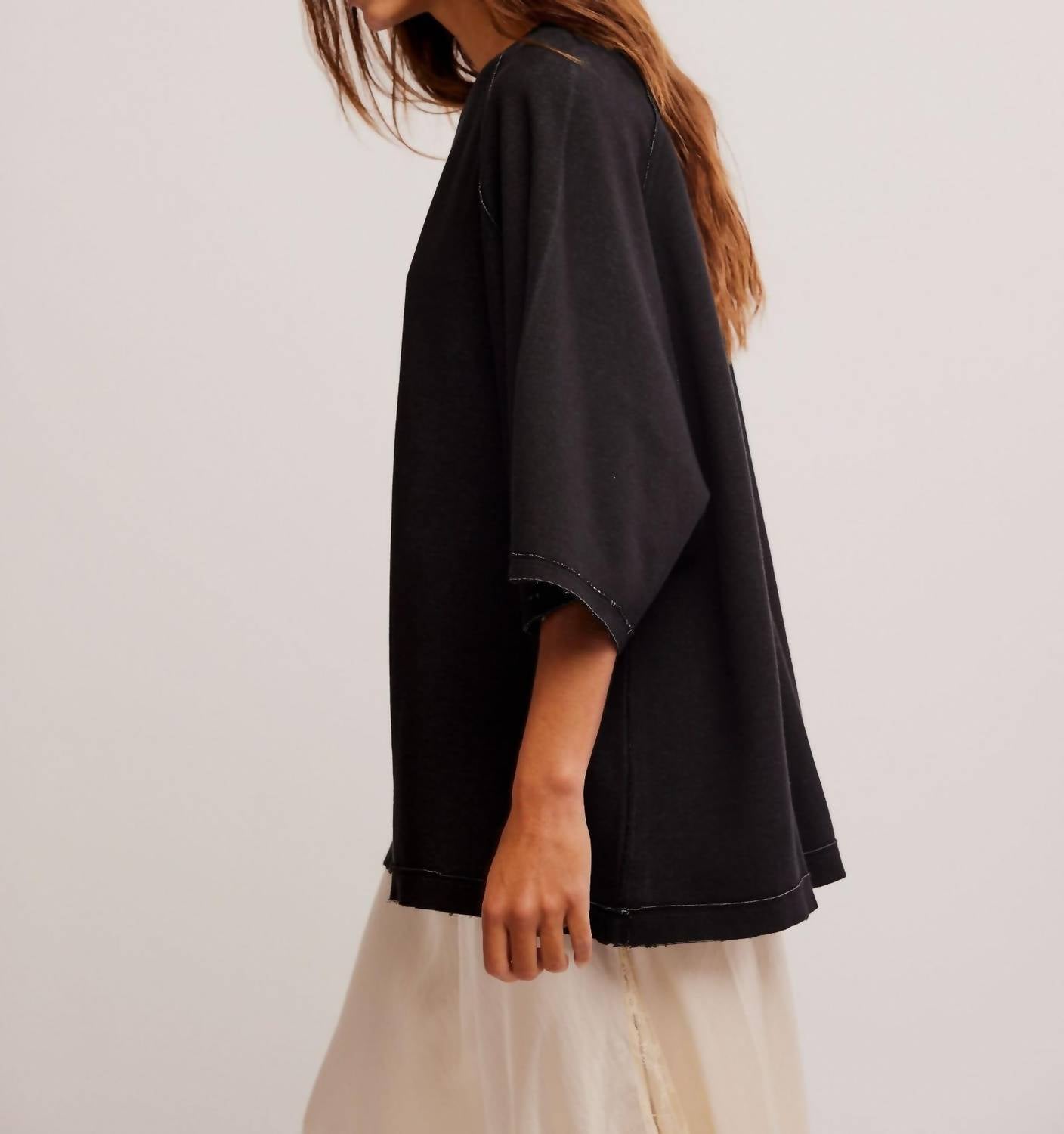 A camiseta de manga curta que você vai querer em todas as cores. Apresentamos a Joah Tee da Free People, uma camiseta preta de gola redonda projetada para proporcionar conforto e estilo. Esta camiseta de manga curta é confeccionada em uma mistura de algodão de alta gramatura, especificamente 75% algodão e 25% poliéster, garantindo durabilidade para o uso diário. Com um prático fecho de pressão, é fácil de incorporar aos seus looks do dia a dia, mantendo sua simplicidade chique. Cuidar desta peça essencial é fácil, com instruções de lavagem à máquina e secagem em tambor.