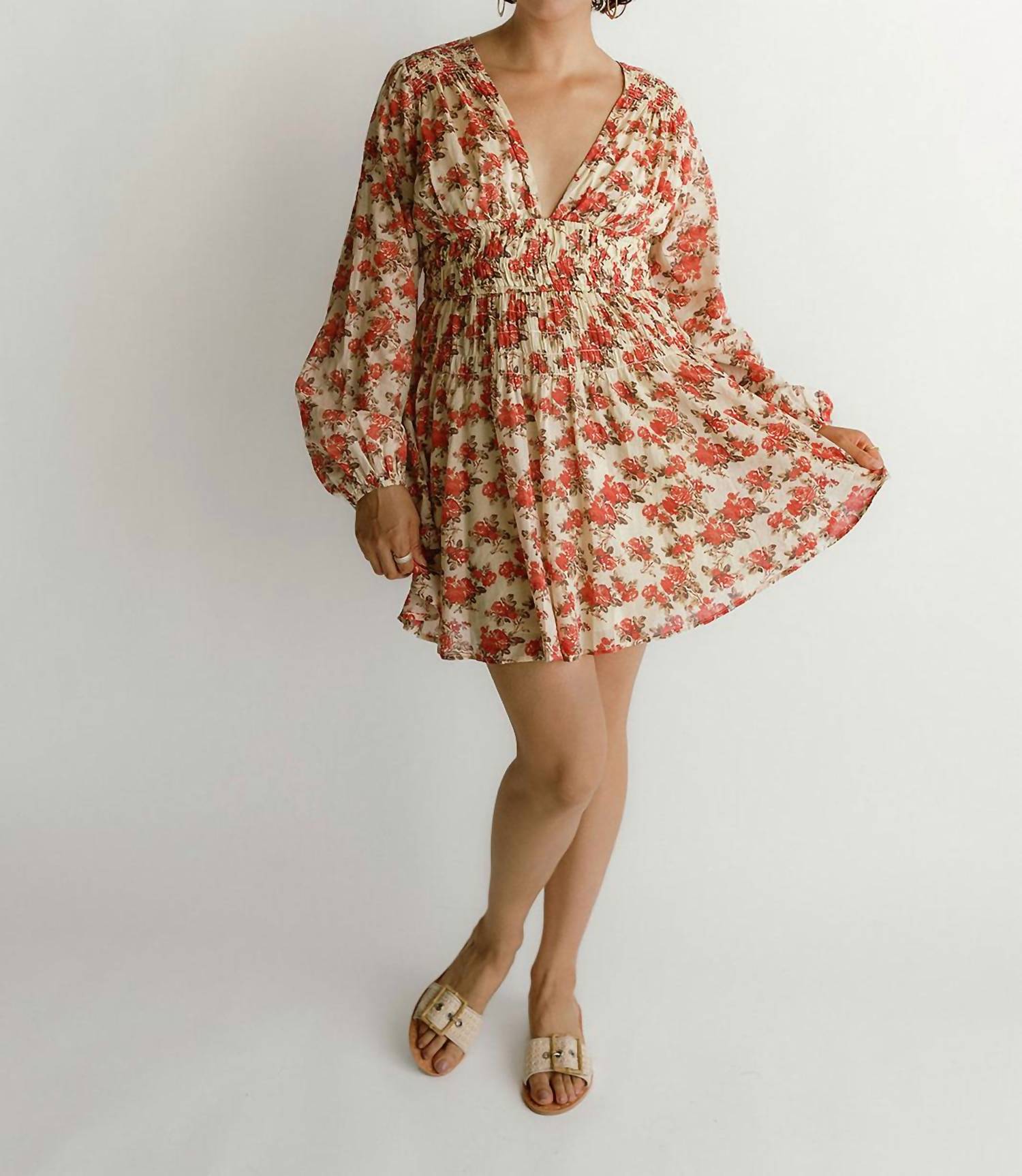 O minivestido perfeito para os meses mais quentes. Apresentamos o Vestido Mini Keep You da Free People, uma peça versátil com infinitas possibilidades de estilo. Confeccionado em algodão macio, este vestido floral multicolorido apresenta uma silhueta evasê elegante com decote em V profundo. Possui mangas longas com estampa balonê e uma faixa franzida para um charme extra, complementada por um recorte nas costas com fecho de botão. Cuidados: Lavar à máquina.
