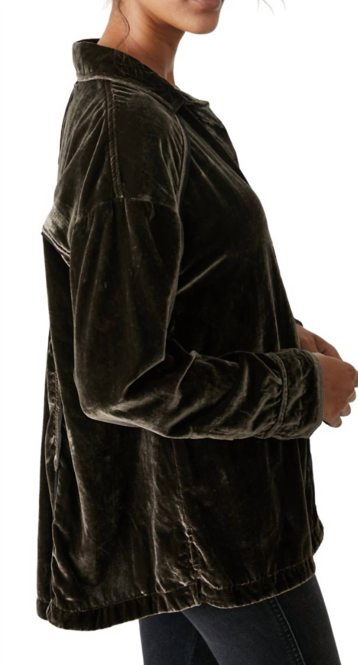 Confeccionado em veludo macio e suntuoso. Gola clássica. Fecho de colchetes no centro da frente. Franzido nas costas. Punhos divididos. Punhos com fecho de colchetes. Bordas desfiadas. 75% Viscose. 25% Poliamida. Fabricado no Vietnã. Lavar à mão.