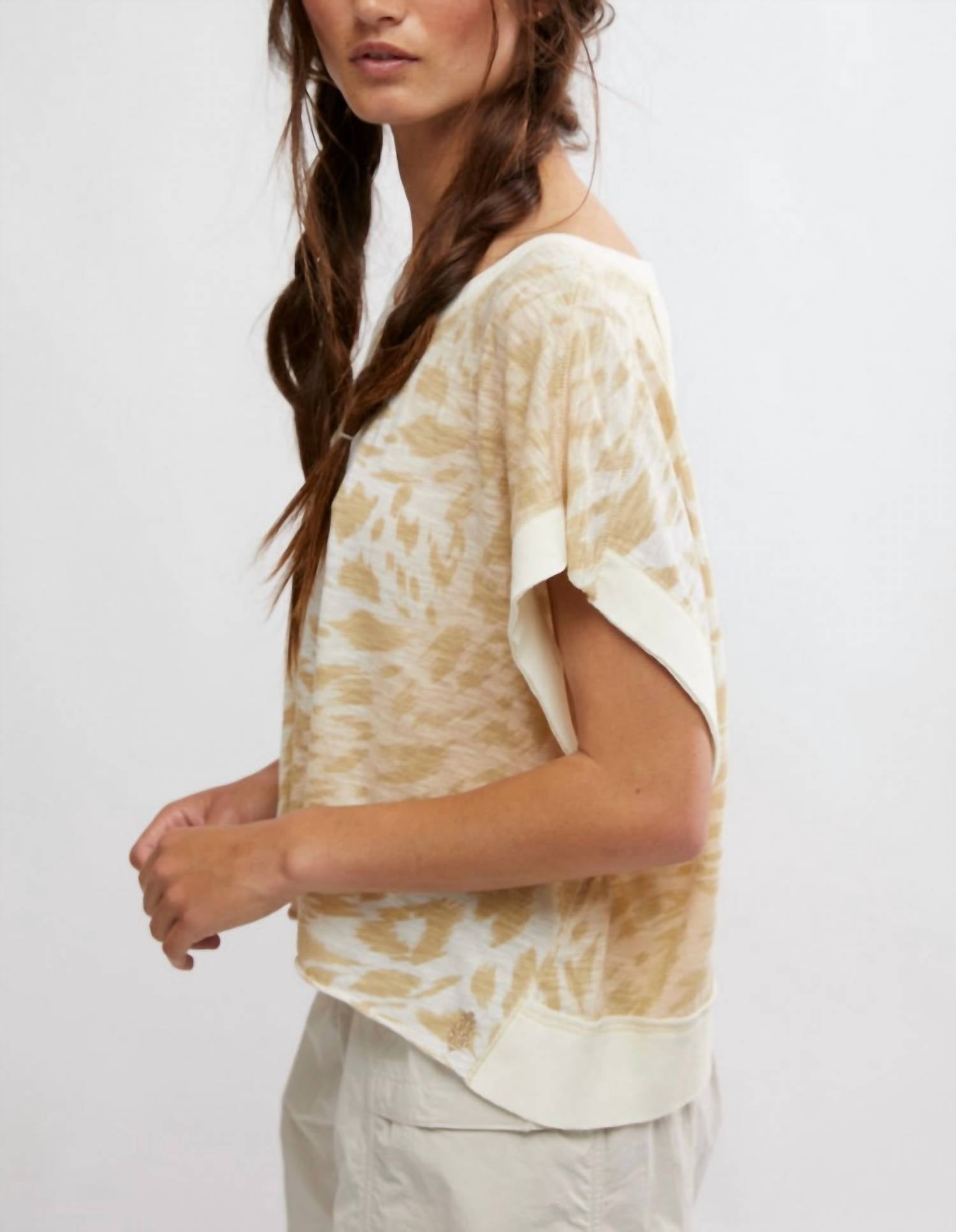 Use-o sobre seu sutiã esportivo favorito para um visual mais estiloso e esportivo. Adote um estilo descontraído com a camiseta estampada My Time da Free People, perfeita para dar um toque especial aos seus treinos. Esta camiseta Raving Leopard Dune apresenta um design casual com mangas curtas e gola redonda folgada, realçando sua sensação arejada. Confeccionada em mistura de algodão, a blusa mede 53 cm de comprimento, oferecendo um ajuste confortável para qualquer atividade. Composição: 60% algodão, 40% poliéster. Fecho: estilo pull-on. Cuidados: Lavar à máquina com água fria.