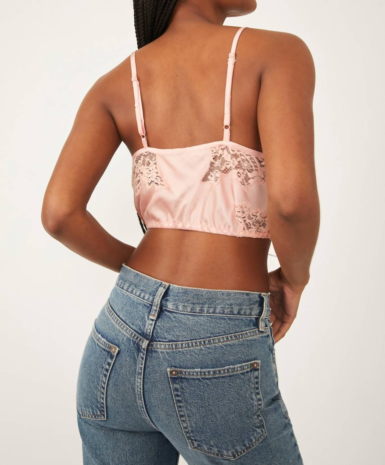 100% poliéster. Brami sedoso e sensual com decote coração, acabamento em renda e bainha com faixa para uma silhueta esvoaçante. Alças ajustáveis. Acabamento em renda por toda a peça. Modelagem cropped. Lavar à mão com água fria. Importado.