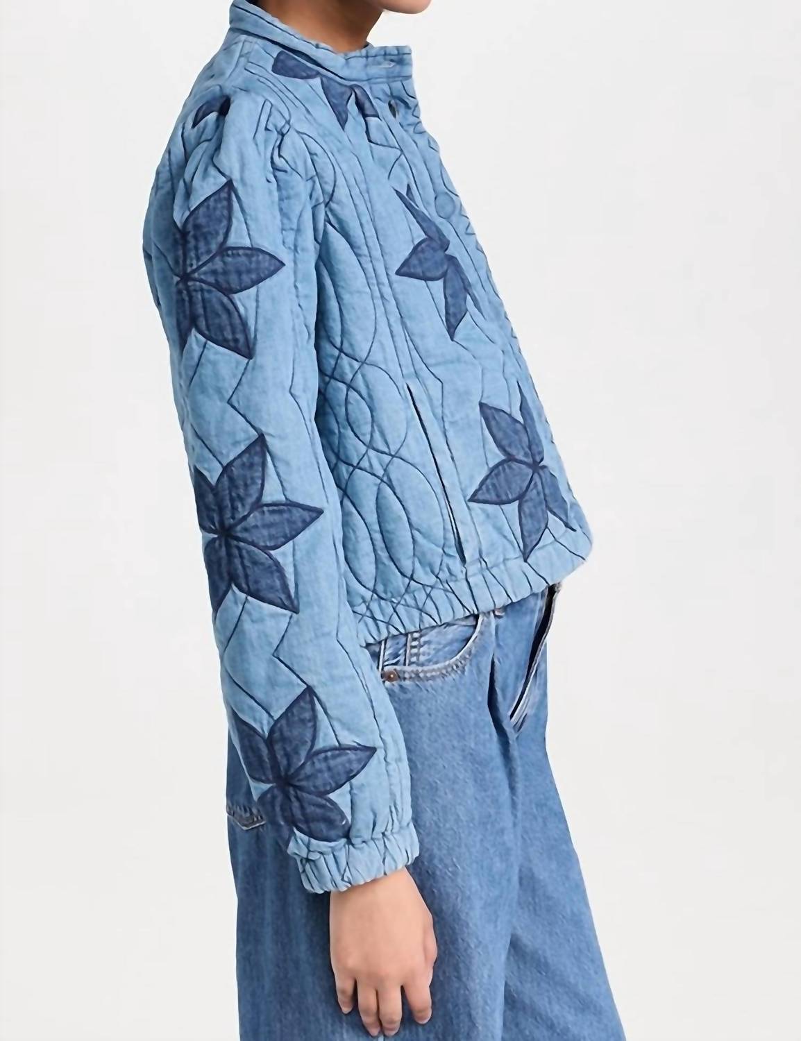 Fechamento frontal por botões, bainha inferior elástica, ombros definidos. Silhueta curta e quadrada com acolchoamento e patches definidos por toda a peça. Caimento relaxado e folgado. Exterior: 100% algodão. Acabamento: 100% algodão. Busto: 117 cm; Comprimento: 55 cm; Comprimento da manga: 66 cm (tamanho P). Somente lavagem a seco. Importado.