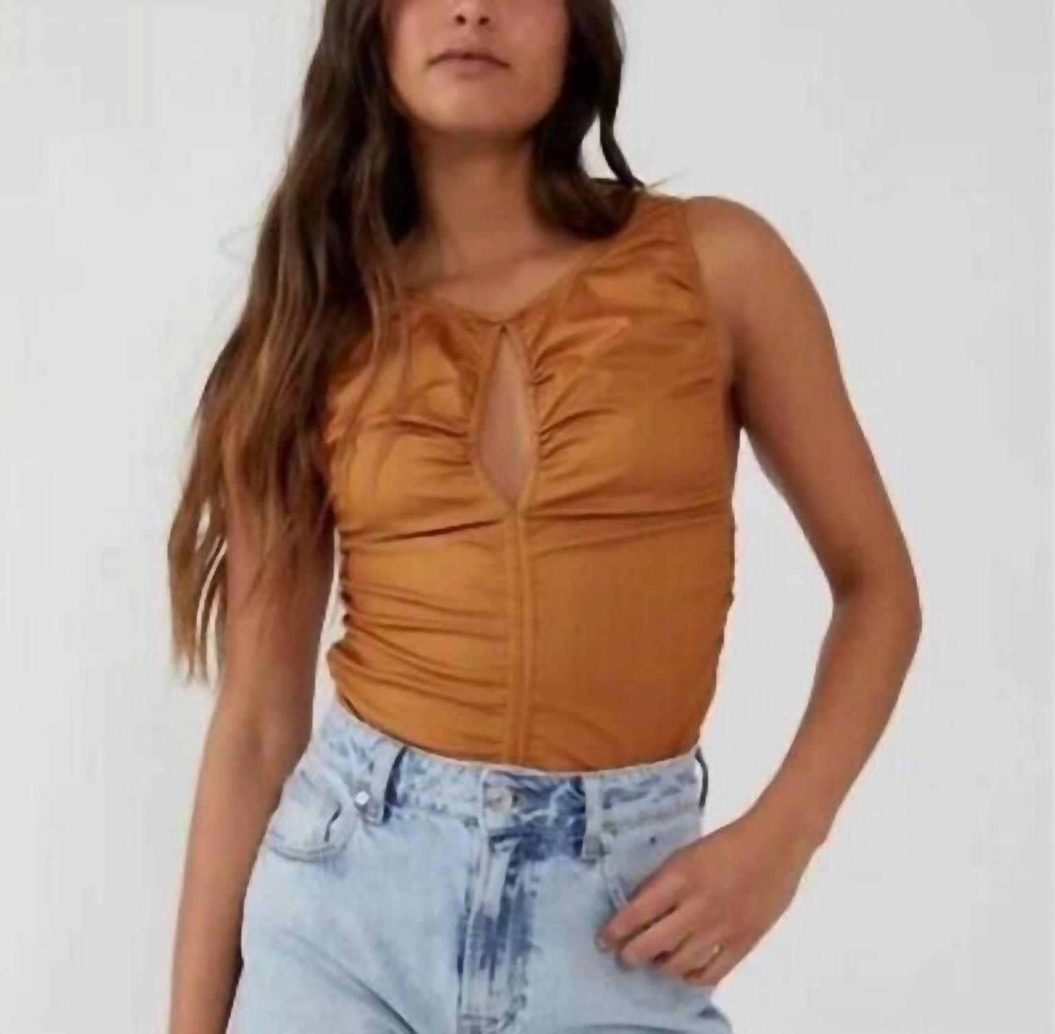 Caimento, tecido e funcionalidade. Esta regata preenche todos os requisitos. Eleve seu guarda-roupa casual com a blusa Ride Along da Free People, disponível na elegante cor Cow Girl. Esta regata sem mangas é confeccionada em poliéster sólido, ideal para um look descontraído e elegante. Possui gola redonda clássica e fecho prático. Lave à mão e seque na secadora conforme sua conveniência.