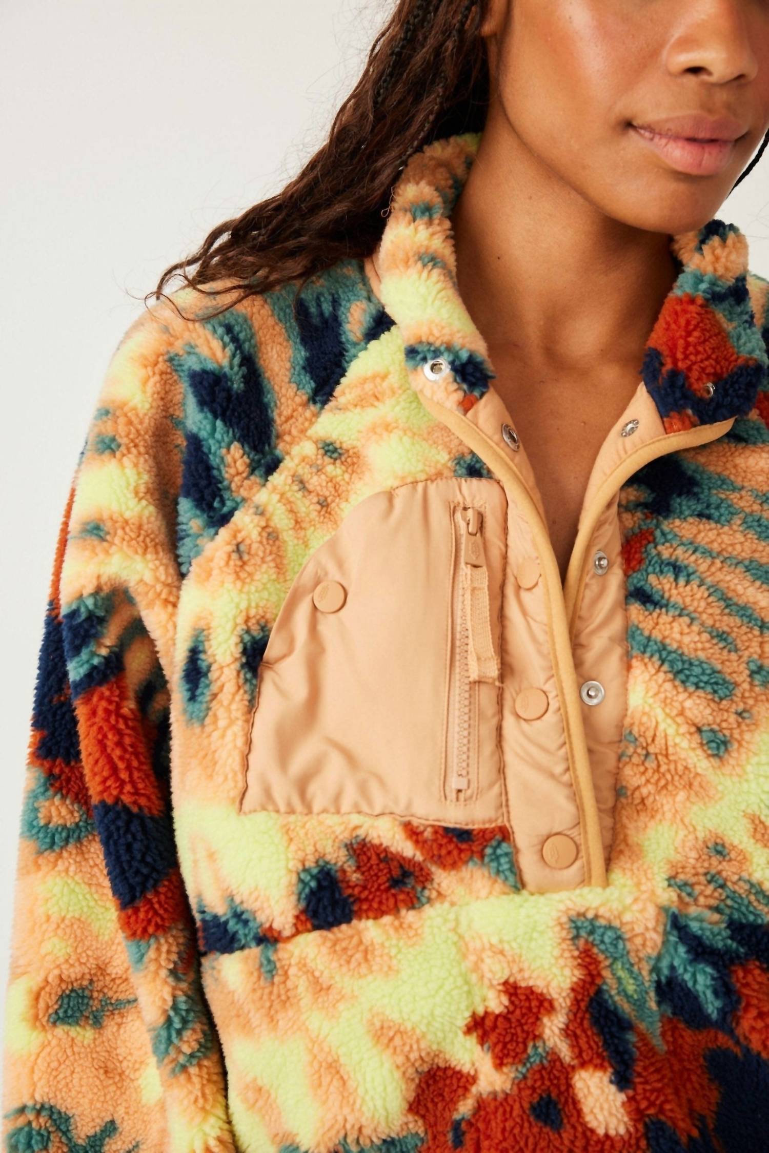 Temperaturas mais frias pedem camadas de roupa e nós amamos este moletom adorável por todos os motivos óbvios. Esta peça tie-dye apresenta mangas compridas e gola alta com fecho prático de pressão frontal. Confeccionada em mistura de algodão, inclui bolsos frontais com zíper para maior funcionalidade. Os cuidados são simples, com instruções de lavagem à máquina e secagem em tambor.