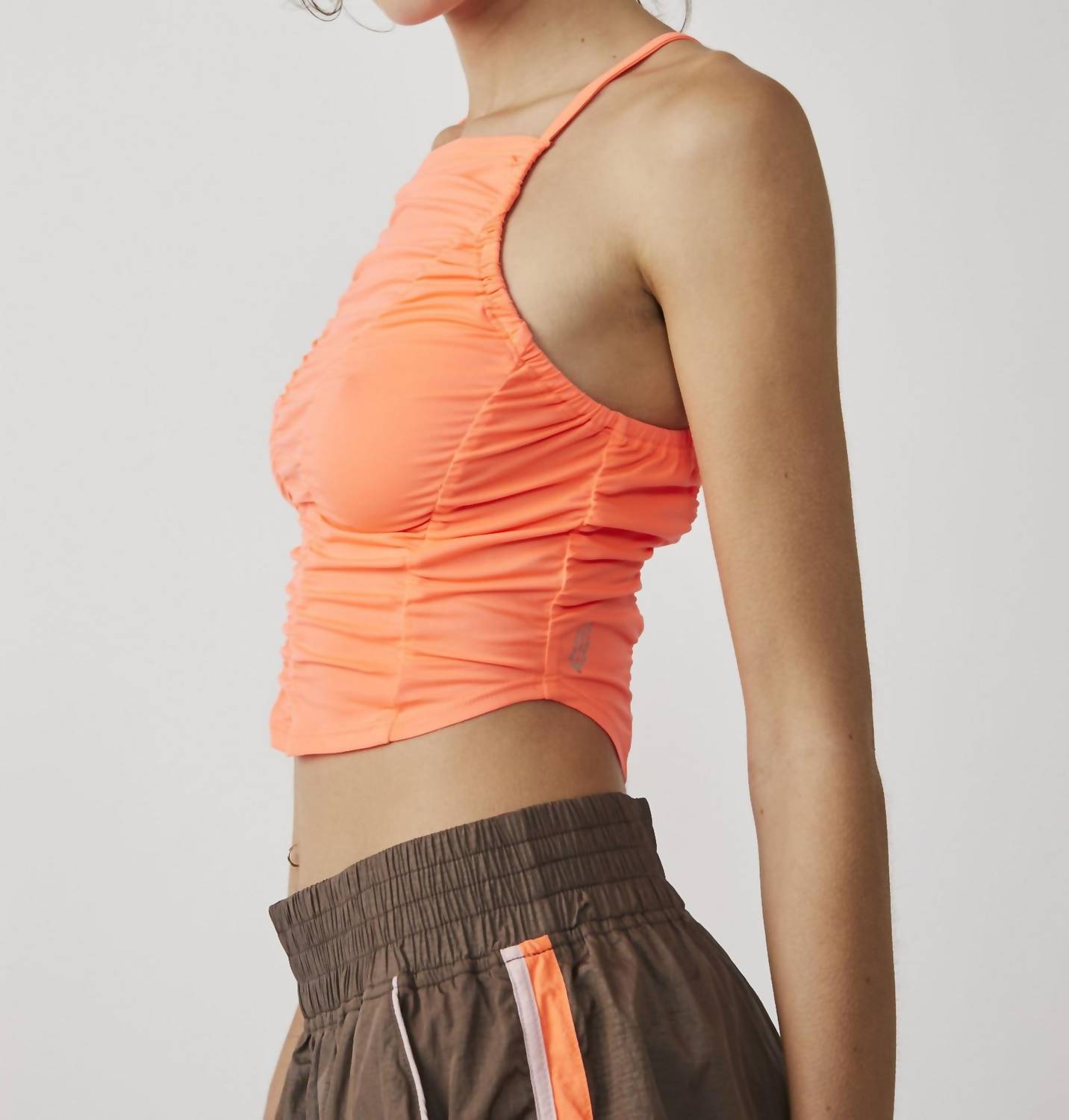 Esportiva e feminina, esta regata texturizada apresenta costuras franzidas e alças finas, além de decote reto e recorte ousado nas costas.