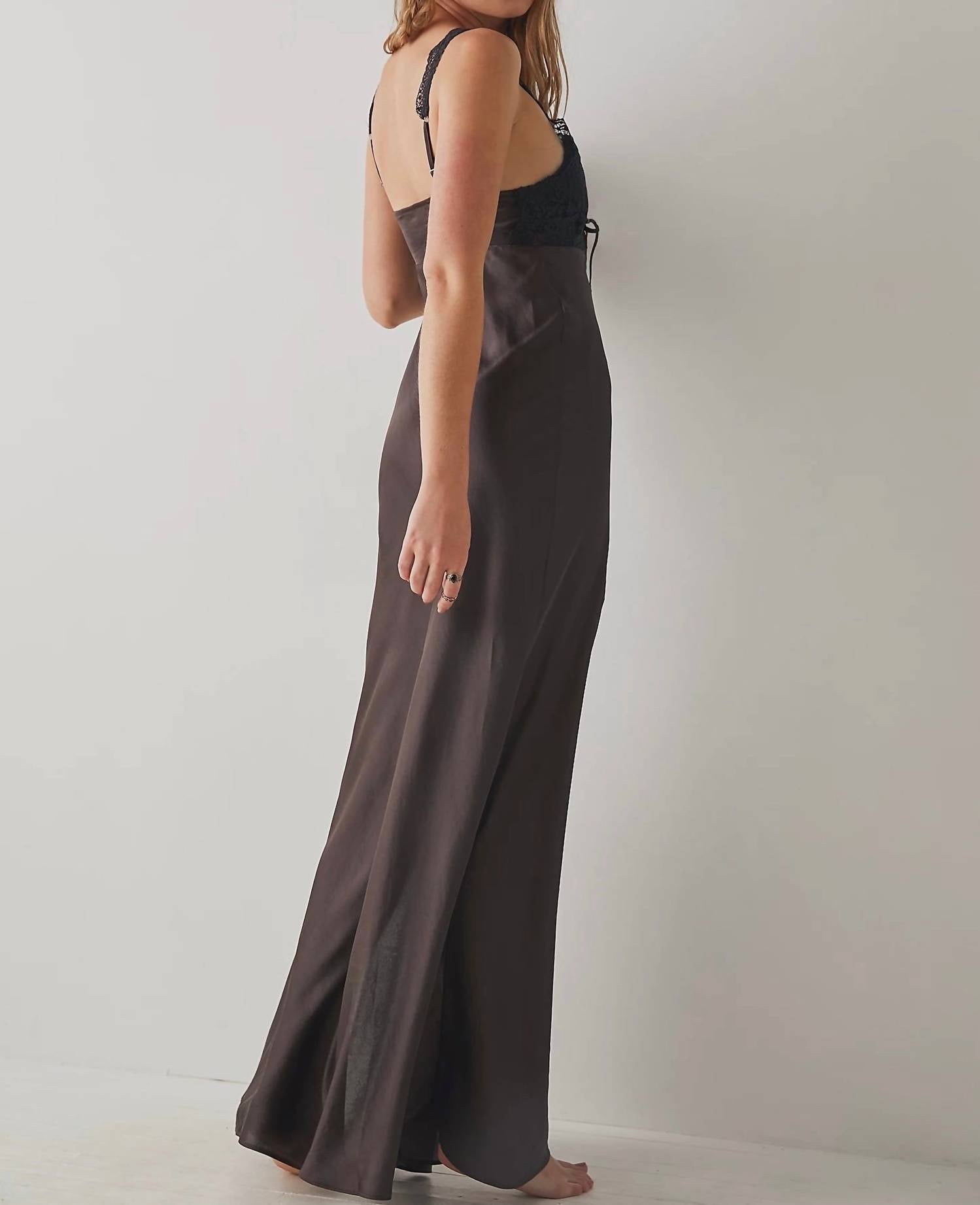 Confeccionada em renda luxuosa, esta combinação de comprimento maxi exibe detalhes sensuais em renda no busto e uma fenda ousada na perna. Ideal para uma saída à noite, combinada com saltos altos ou em camadas para um look chique para o brunch. Desenhada para mulheres com uma estampa sólida, esta peça garante uma elegância marcante.