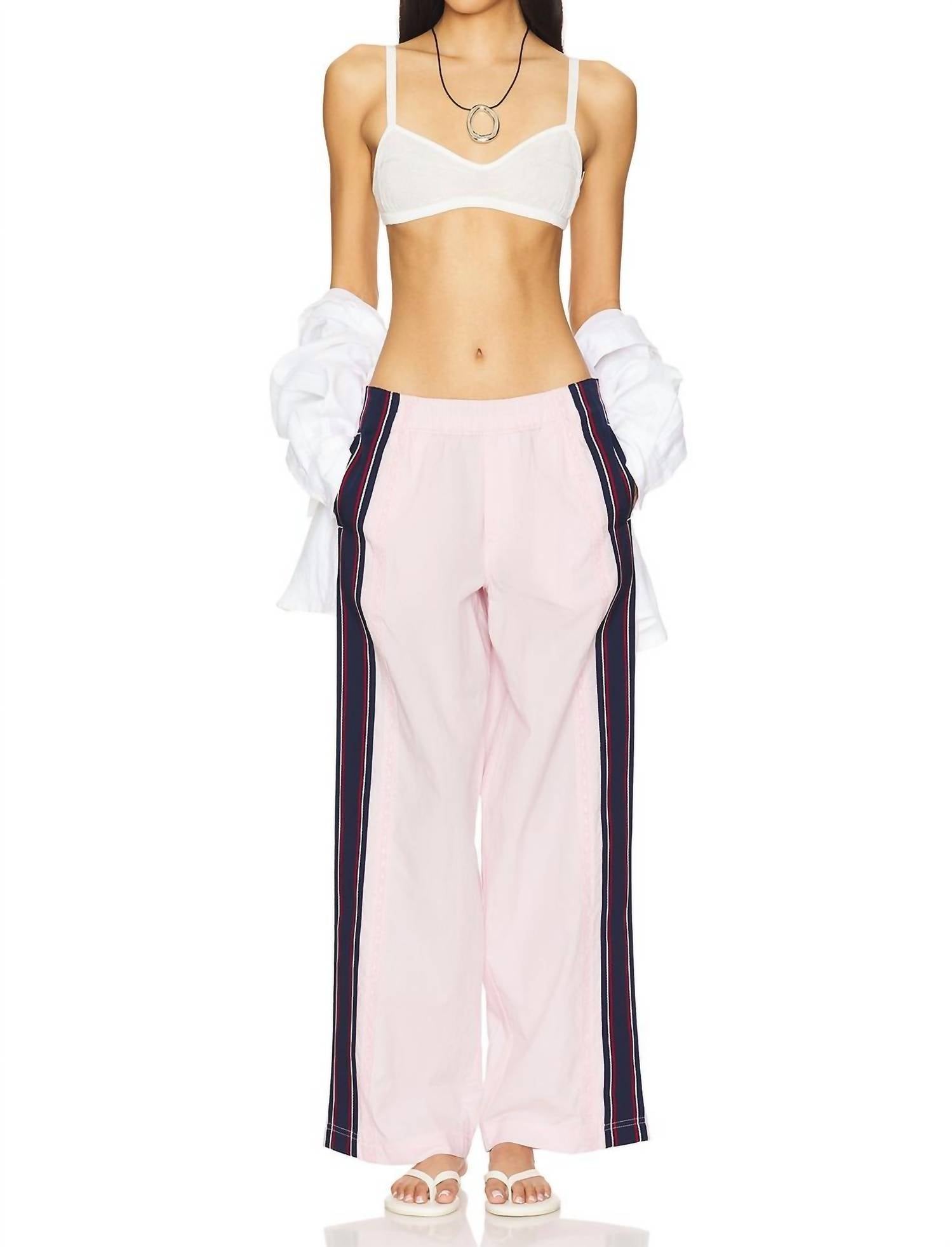 Encontre o equilíbrio perfeito entre esportivo e chique com a Calça Pull-on Team Spirit da Free People, na vibrante cor Pep Pink. Esta calça de perna larga e cintura média apresenta um design confortável com listras de renda bordadas e detalhes esportivos listrados nas laterais. Confeccionada em 100% algodão com acabamento em poliéster, ela é tão versátil quanto estilosa, com bolsos laterais para maior praticidade. As dimensões para o tamanho pequeno incluem 76 cm de cintura, 102 cm de quadril, 28 cm de cós e 74 cm de costura interna. Cuidados: Lavar à mão com água fria.