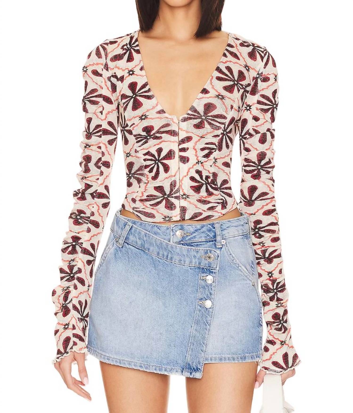 Fecho frontal com colchetes. Acabamento em alface. Tecido jersey franzido de peso médio. A modelo tem 1,75 m e veste tamanho XS. Lavar à mão. Tecido: 100% algodão. Fabricado na Índia.