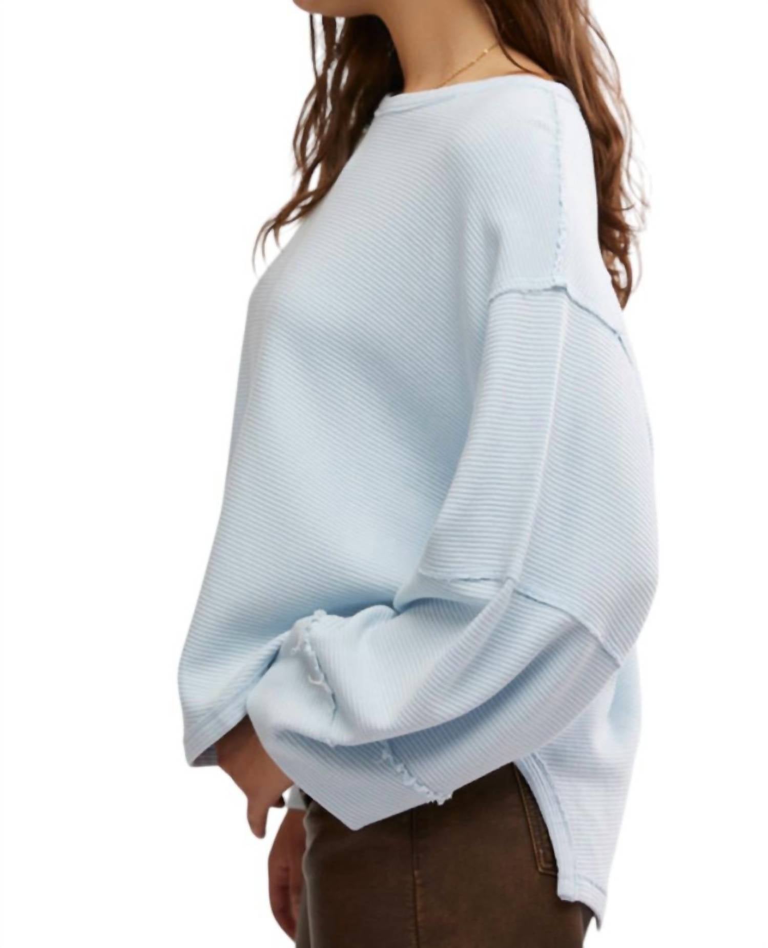 Mantenha-se elegante e confortável com a camiseta Total Eclipse da Free People, disponível em um tom refrescante Ice Water. Esta blusa de manga comprida é confeccionada em algodão macio, garantindo um ajuste suave e respirável. Com um elegante decote canoa, veste facilmente e é fácil de usar. Perfeita para a elegância do dia a dia sem a complicação dos fechos.