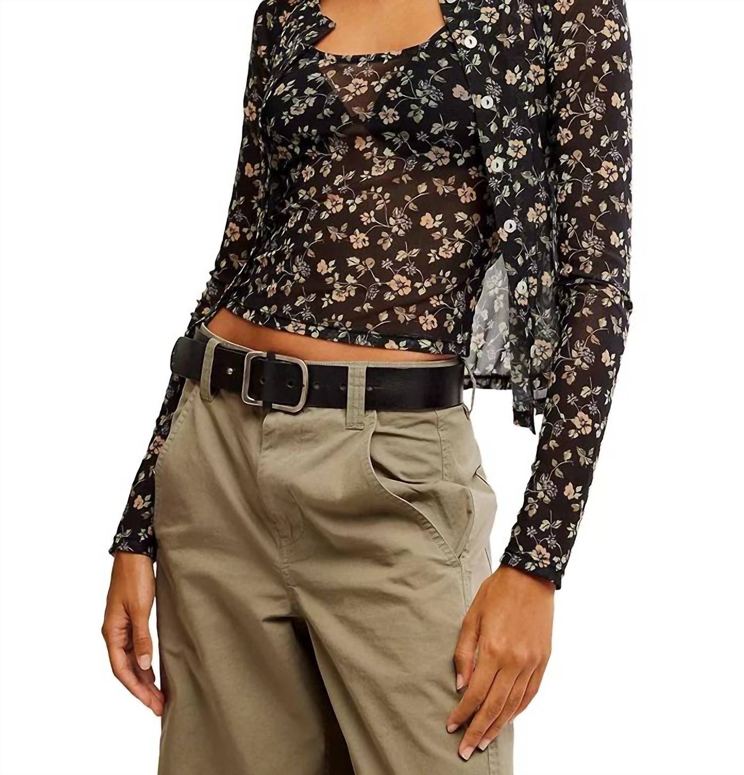Esta blusa 2 em 1 apresenta um cardigan com gola alta, fecho frontal por botões e mangas compridas. A regata por baixo tem decote redondo e um design sem mangas. A malha com estampa floral adiciona um toque de elegância. Confeccionada em 95% poliamida e 5% elastano. Lavável à máquina. Importado.