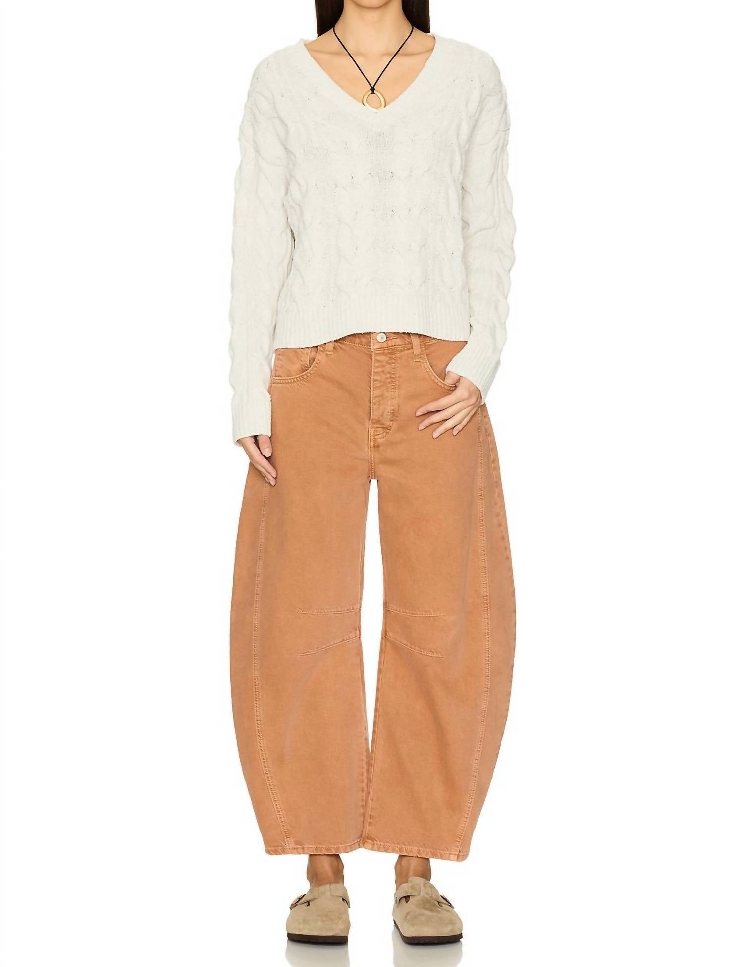Experimente o estilo despojado do suéter com gola V e acabamento em tom lavado da Free People, perfeito para quem valoriza conforto e estilo. Esta malha de peso médio apresenta acabamento canelado e modelagem pull-on, para um visual prático e elegante. Confeccionada em malha de qualidade, esta peça é importada e sua conservação é melhor feita à mão. Aposte na clássica cor branca óptica para valorizar seus itens essenciais do guarda-roupa.