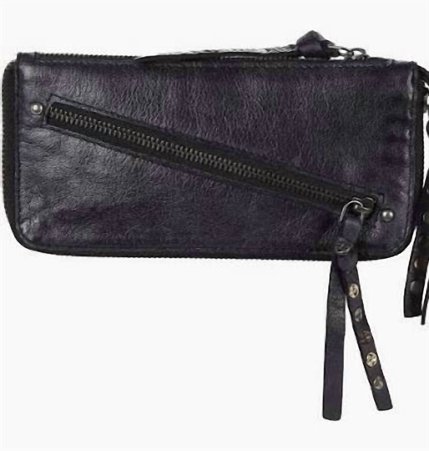 Esta carteira feminina com acabamento envelhecido é feita de couro durável com detalhes envelhecidos, amplos compartimentos para cartões, bolsos e fecho de zíper seguro. Inclui uma pulseira prática.