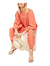 Blusa feminina de manga comprida com decote em joia Free People, laranja, tamanho extragrande