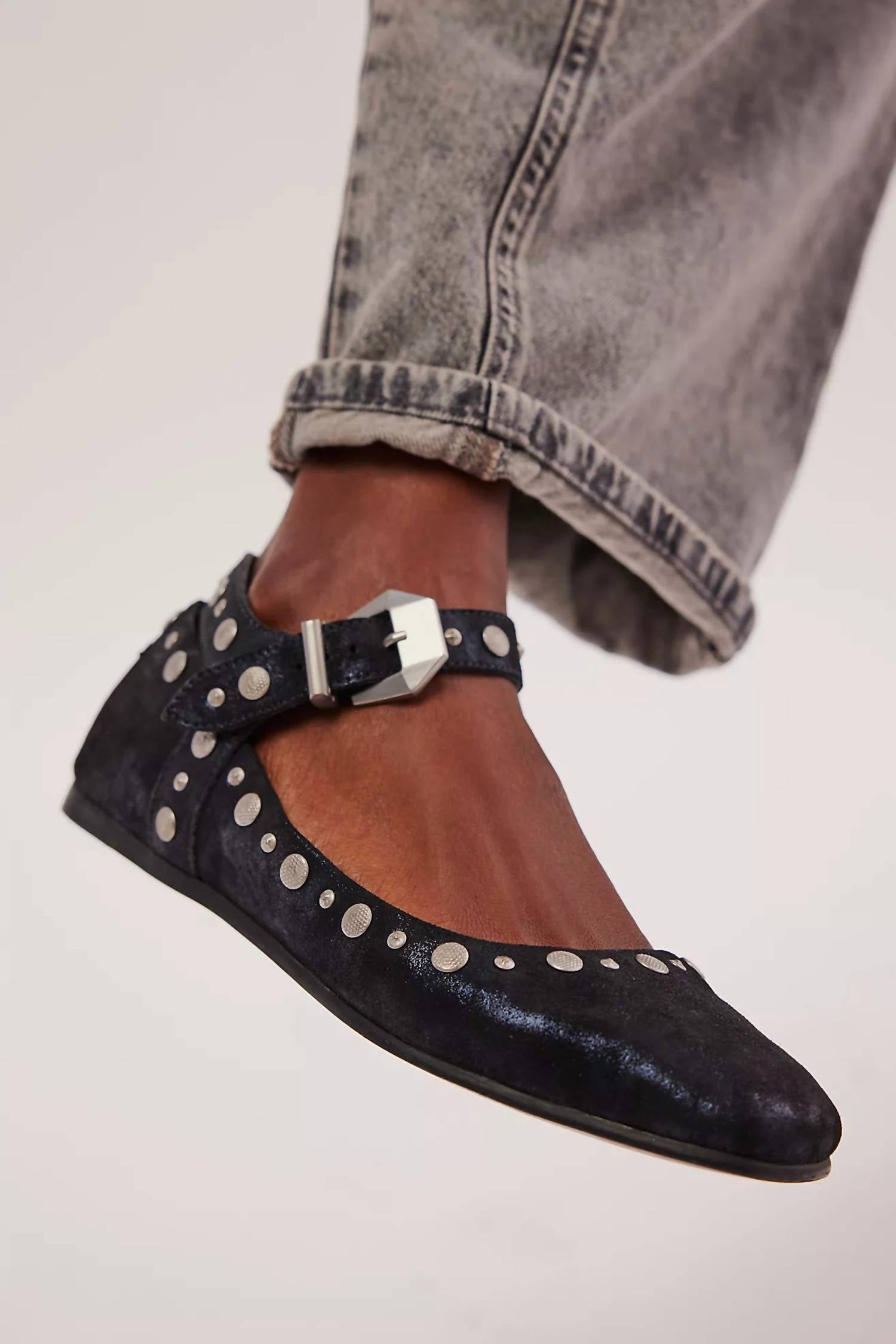 Couro macio e amanteigado com tira ajustável no tornozelo, detalhes cravejados deslumbrantes e bico arredondado clássico. Solado plano. Palmilha acolchoada. Fecho de fivela ajustável. Este modelo é fiel ao tamanho, mas se estiver entre tamanhos, sugerimos comprar um número maior.