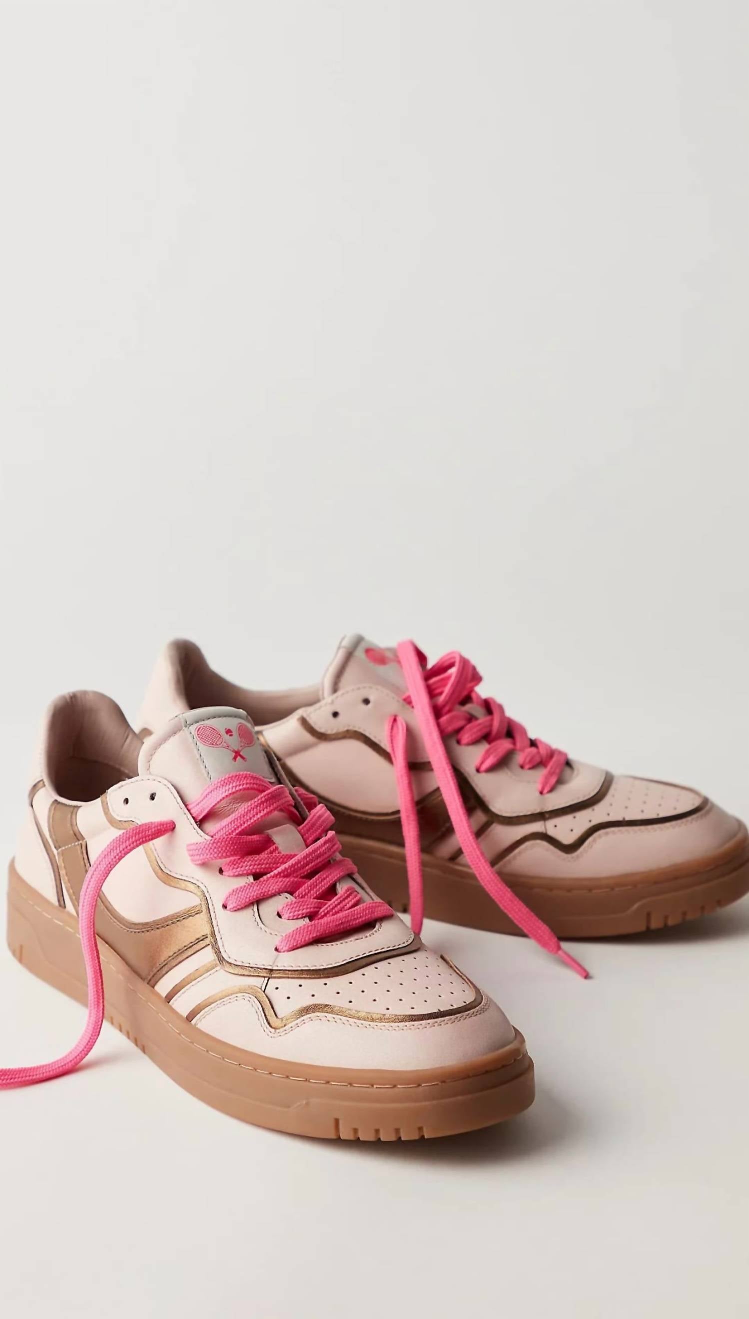 Quando moda e funcionalidade se unem perfeitamente. Abrace a vibe retrô com o Tênis Feminino Retro Thirty Love da Free People na cor rosa. Este tênis de cano baixo possui cabedal de couro com blocos de cor, debrum contrastante e biqueira perfurada para um visual de inspiração vintage. Projetado com solado de borracha e fecho de cadarço para garantir suporte e estilo. Ideal para combinar com meias cano curto clássicas de comprimento 1/4 para um toque retrô completo.