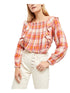 Blusa feminina Free People com babados, recortes franzidos, manga comprida, gola quadrada, rosa, tamanho pequeno