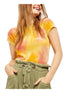 Free People Feminino Amarelo Tie Dye Manga Curta Gola Redonda Top Curto Amarelo Tamanho Grande