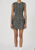 Introducing the Chantelle Herringbone Sleeveless Shift Dress by FRENCH CONNECTION, a sophisticated piece in a classic black and white herringbone pattern. This mini dress is crafted from a luxurious polyester blend and features a round neck and faux pearl buttons for added elegance. The sleeveless design and two side flap faux pockets add to its chic appeal, while a zip closure ensures a perfect fit. Model is wearing a US Size S and stands at 5ft10".