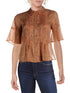 Blusa feminina French Connection com babados, transparente, estampada com botões na frente, manga curta e gola, laranja, tamanho 6