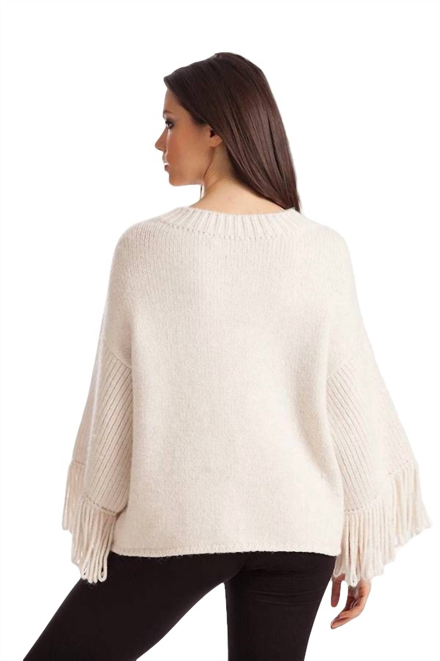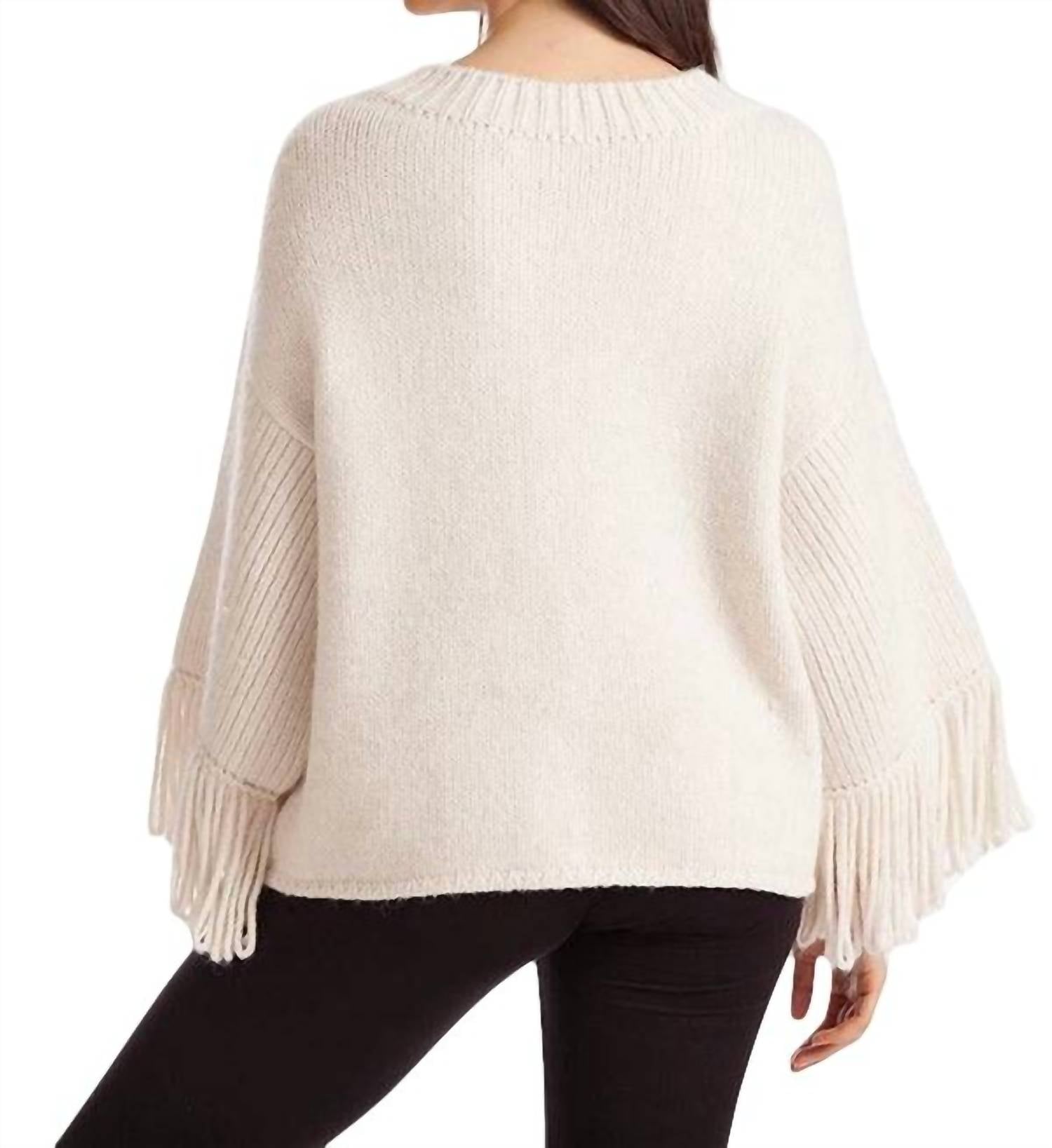 O suéter perfeito para usar, habilmente confeccionado para proporcionar a combinação perfeita de aconchego e estilo. Seu design clássico e tecido macio o tornam um item essencial para o seu guarda-roupa. 75% acrílico, 23% poliéster, 2% elastano. Lavagem delicada à mão ou a seco. Visão geral: Suéter French Kyss importado, decote em V, mangas com franjas, ajuste na cintura.