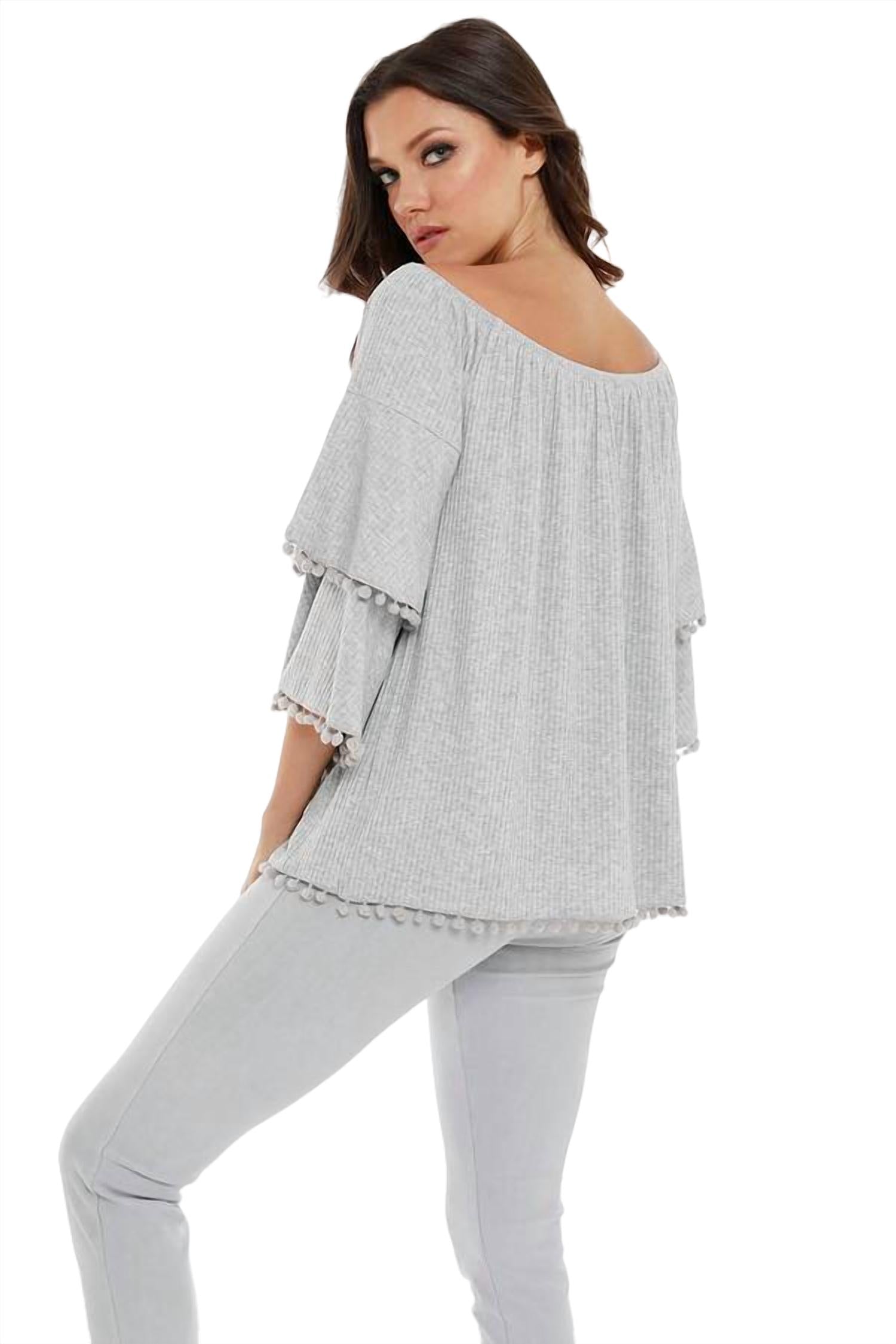 Abrace a versatilidade desta blusa estilo túnica, habilmente confeccionada para ser usada em camadas sem costura ou sozinha. Seu design detalhado e caimento confortável a tornam um complemento perfeito para qualquer guarda-roupa. 65% poliéster 35% viscose. Lavagem delicada à mão ou a seco. Visão geral: Blusa French Kyss importada. Ombro a ombro. Detalhe de pompom. Mangas 3/4. Ajuste no quadril.