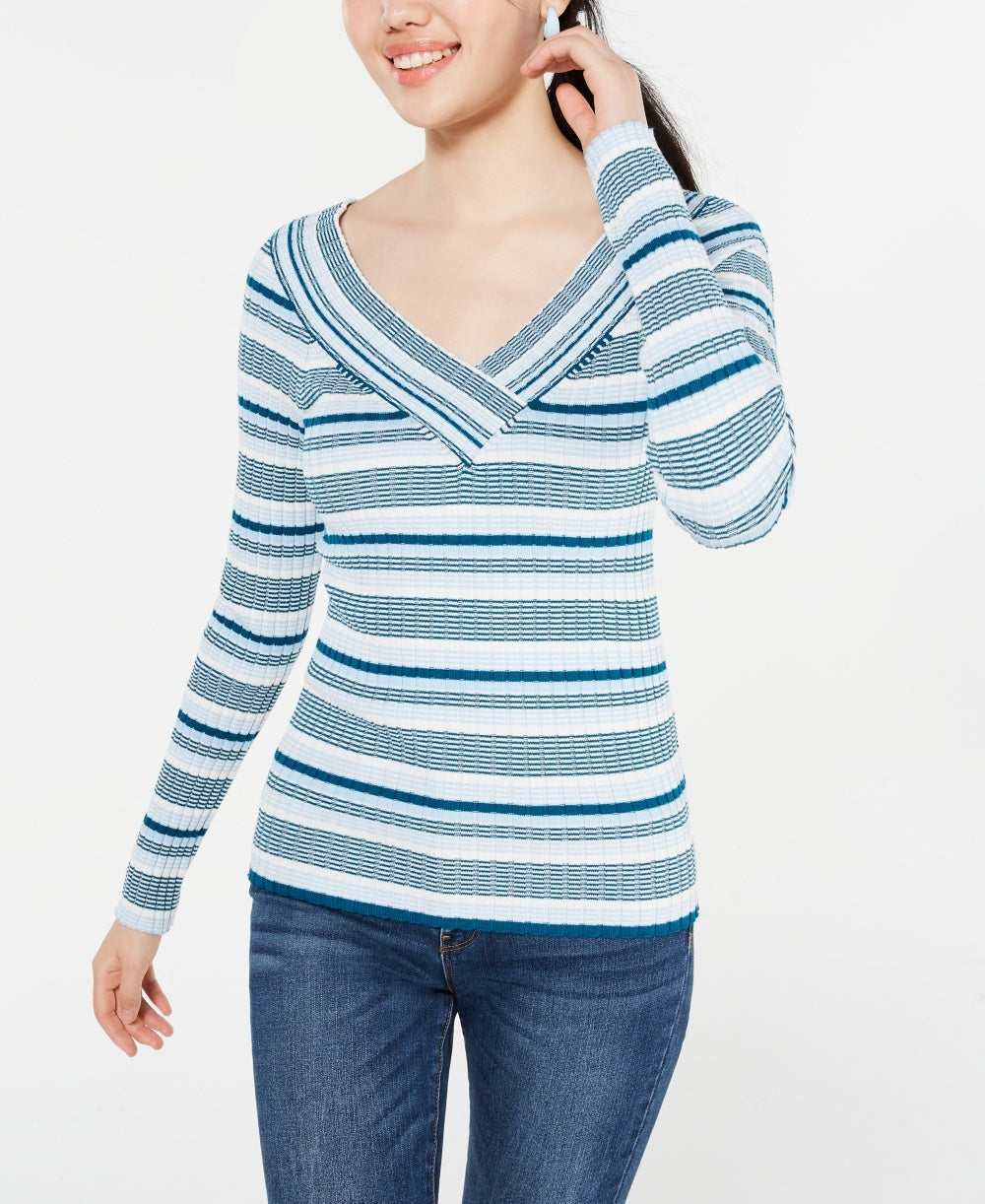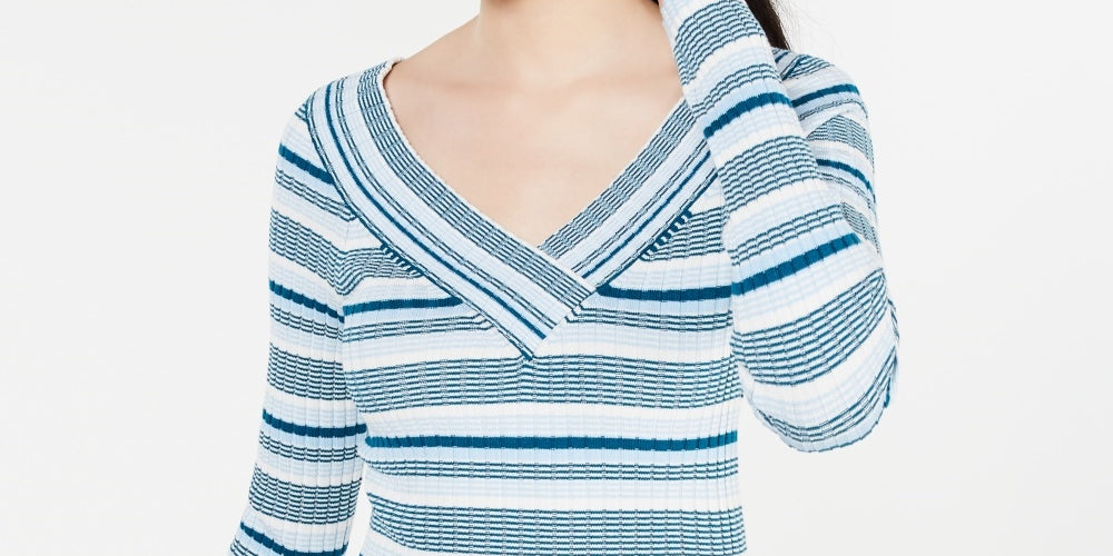 Suéter listrado com decote em V para calouros e juniores, verde, tamanho pequeno