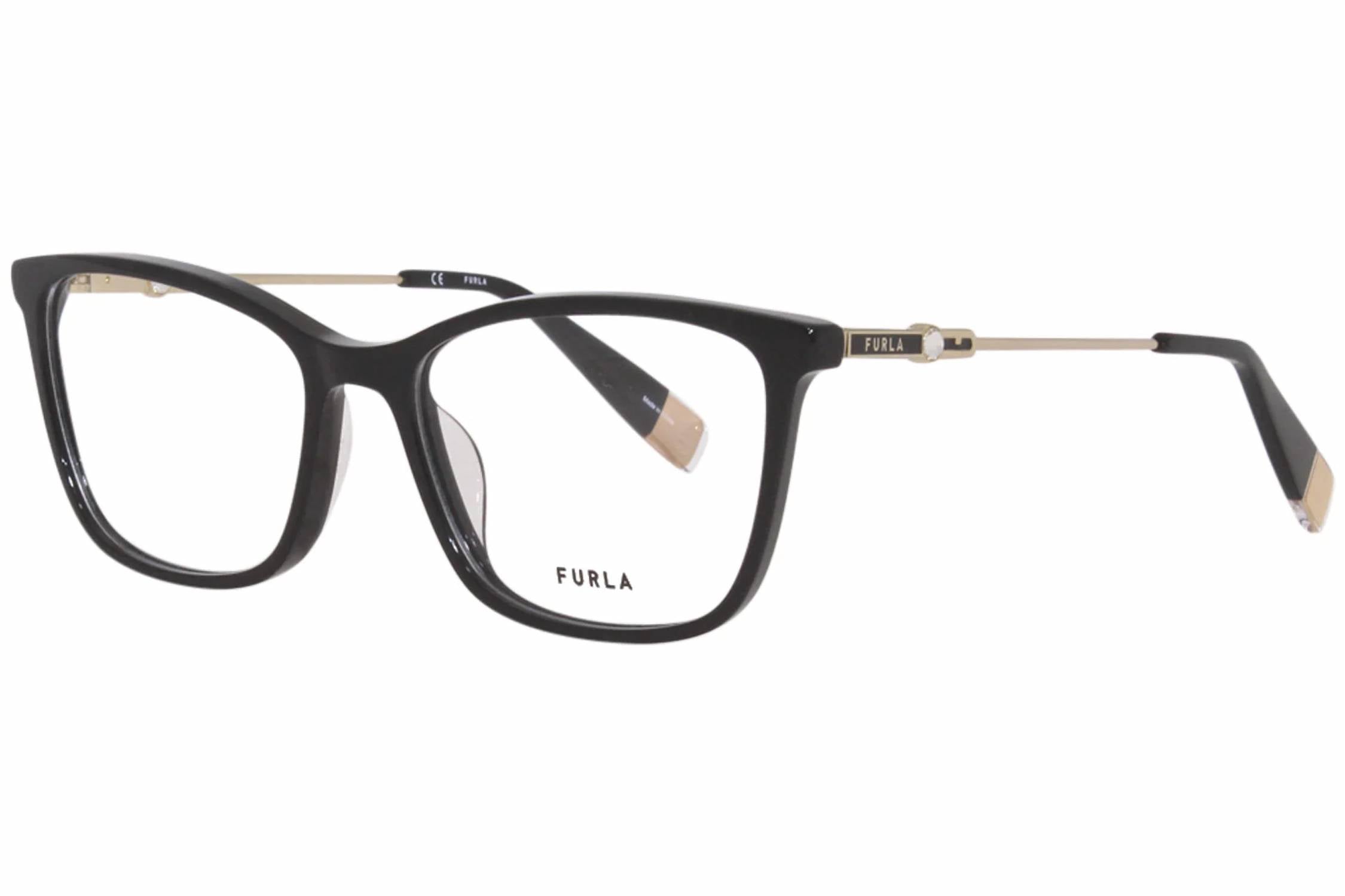 Descubra os óculos de grau femininos Furla Vfu390s na elegante cor Preto Brilhante/Dourado, perfeitos para adicionar um toque de sofisticação a qualquer visual. Estes óculos de sol estilo gatinho apresentam um design de aro completo feito de plástico durável, garantindo estilo e durabilidade. O tipo de dobradiça com mola/flexível aumenta o conforto, tornando-os progressivamente adequados para uso versátil. As dimensões incluem uma largura de lente de 53 mm, comprimento da haste de 135 mm e uma ponte nasal de 16 mm.