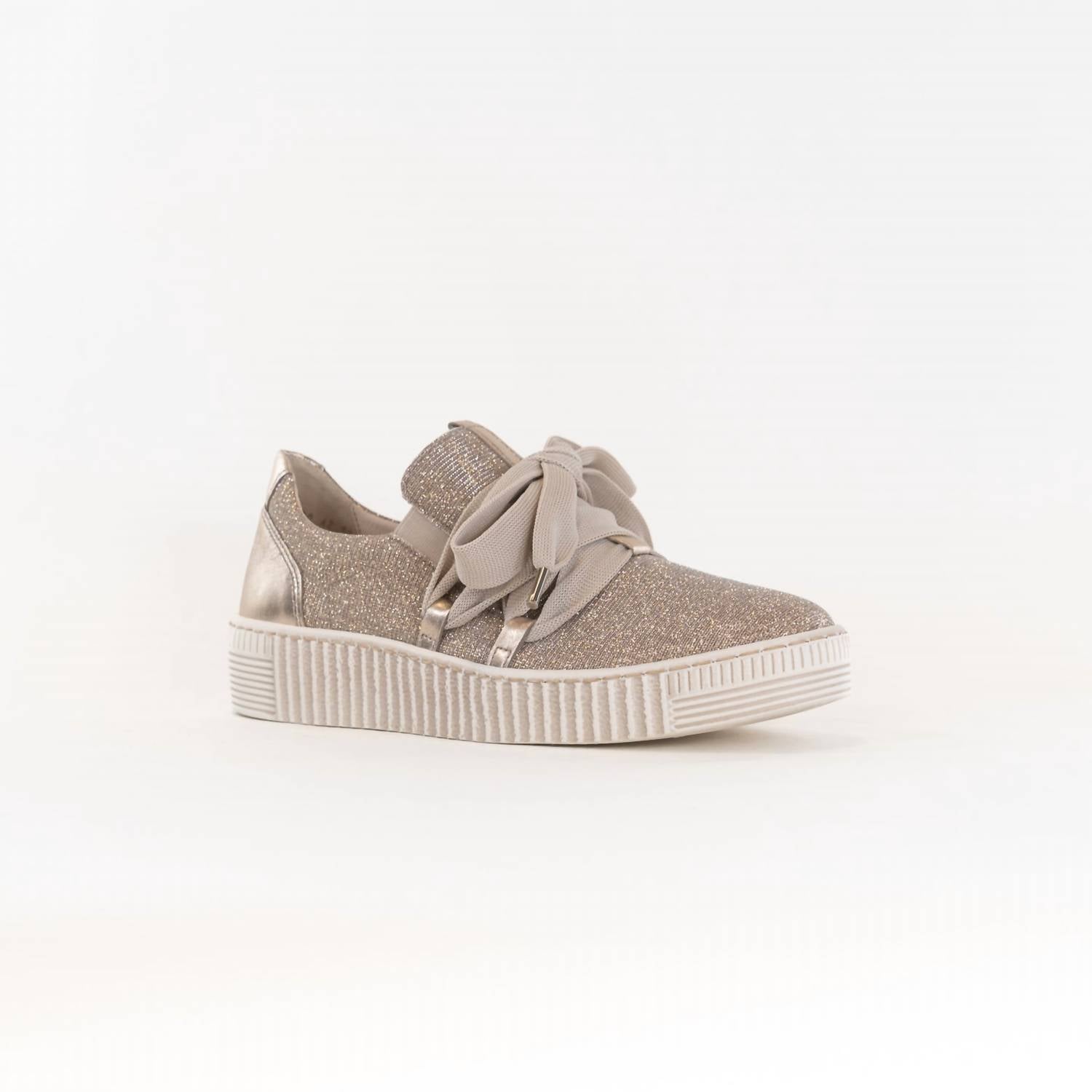 Step out in style with the Women's A One Sneaker by Gabor, featuring a chic Metallic Rose hue perfect for summer concerts. Crafted from a blend of leather and metallic materials, these sneakers offer a stylish yet durable option for your streetwear collection. Designed with a comfortable 15 MM flat heel and a round toe shape, this shoe ensures all-day comfort with its best fitting design and removable insole. Elevate your summer wardrobe effortlessly with these trendy sneakers.