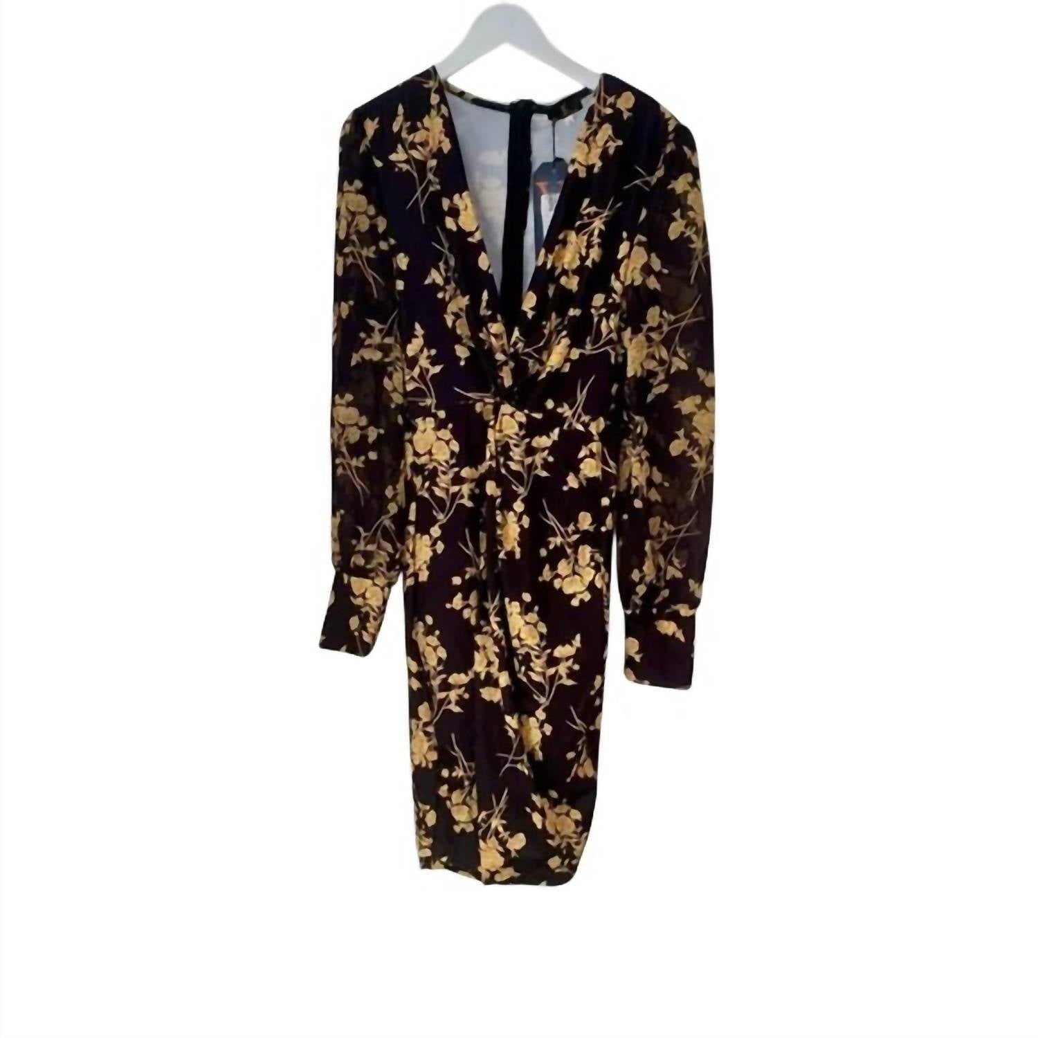 A flattering yet comfortable dress you'll be reaching for season after season. The Women's Elegant Floral Dress by GAJE is a standout piece for any special occasion. Designed with long sleeves, this wrap silhouette dress showcases a black and gold floral pattern, giving it a sophisticated Boho Chic flair. It features a flattering V-neckline and a secure zip closure. Perfect for dinner parties or Easter festivities.