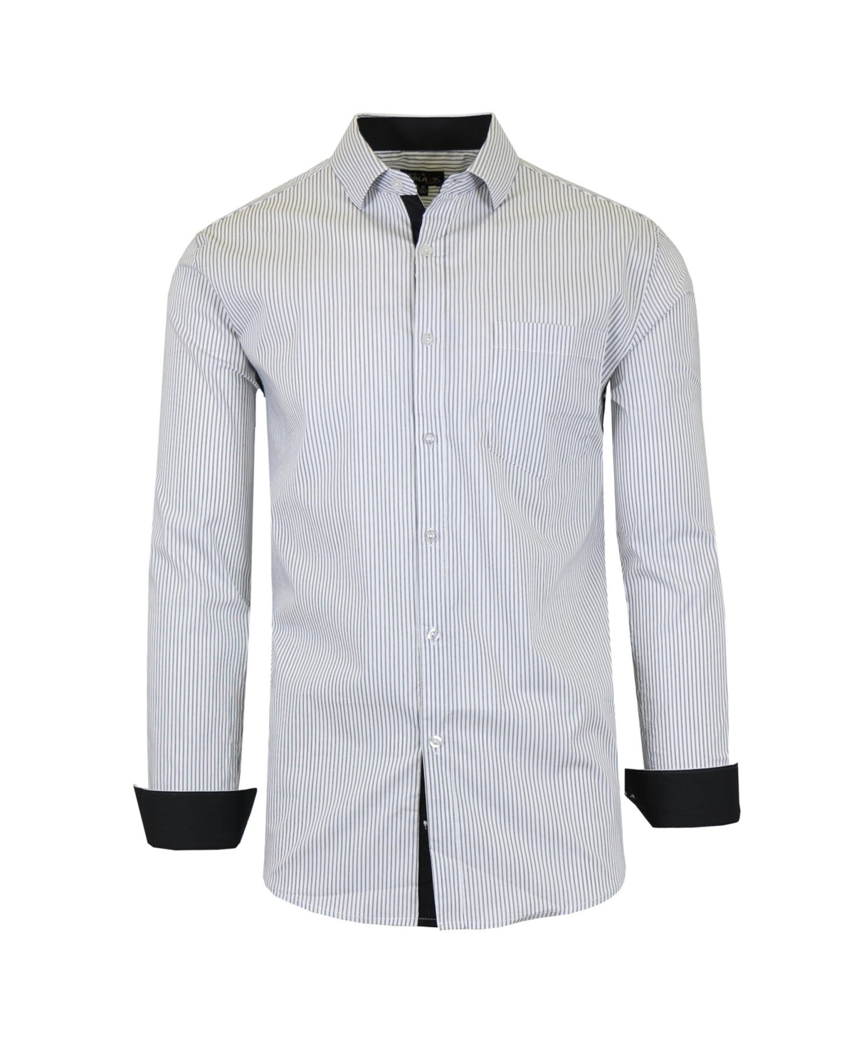 Camisas sociais listradas de algodão elástico de manga comprida com design slim fit para um ajuste generoso. | Gola integrada na gola | Punhos com dois botões nas mangas | Cor contrastante na carcela dos botões | Feito de tecido macio ao toque | Elástico para máximo conforto | Compre 1 tamanho acima
