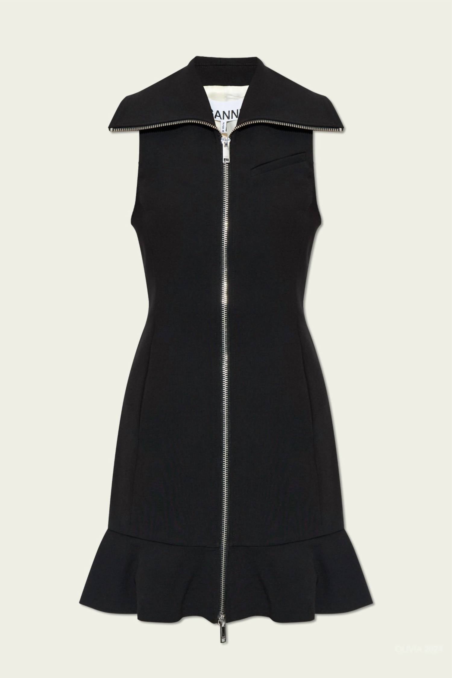 O tipo de vestido fácil e elegante que você vai usar durante toda a estação. Apresentamos o Vestido Curto de Crepe Bonded da GANNI, uma adição chique e sustentável ao seu guarda-roupa. Confeccionado em 100% poliéster reciclado, este vestido curto sem mangas e justo ao corpo oferece uma elegante cor preta sólida com gola clássica. Fabricado na China, o vestido possui um prático fecho de zíper e inclui bolsos para maior funcionalidade. Observe que este produto é baseado no tamanho europeu.