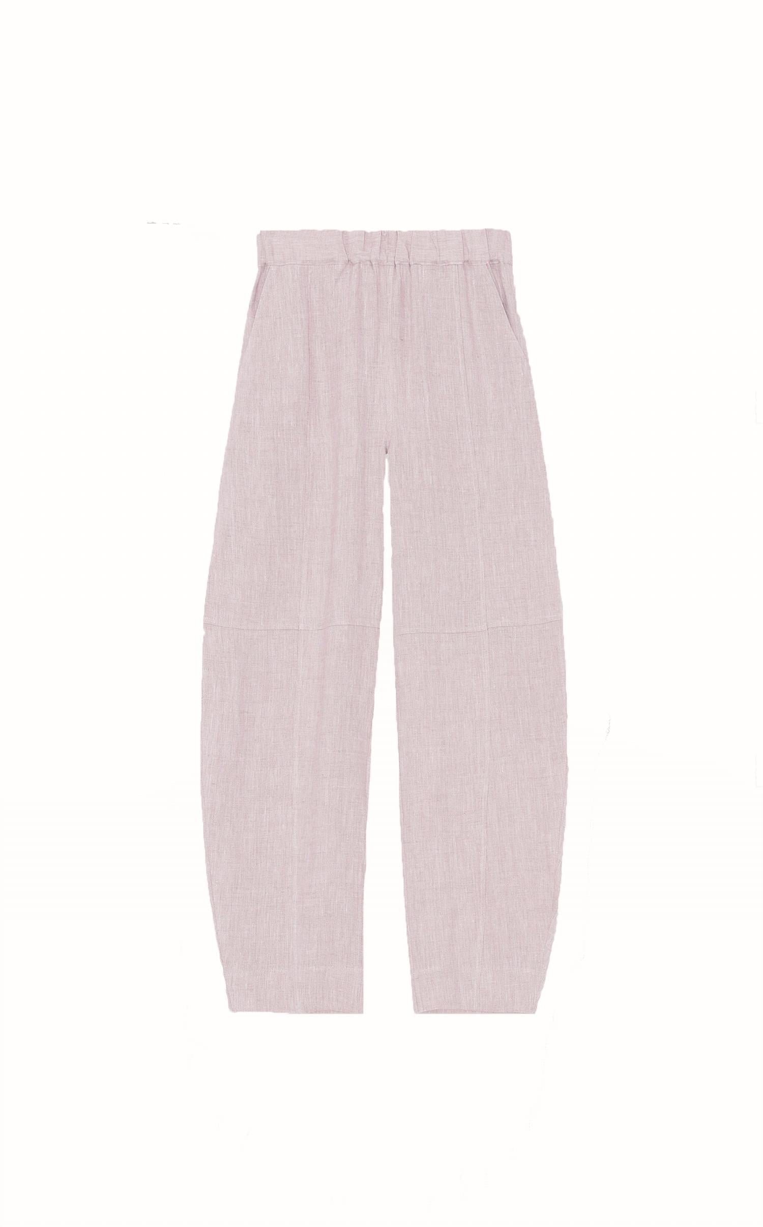 Calças de cintura alta em cânhamo, com acabamento em cós elástico e pernas curvas e afuniladas. Tecido macio e durável com textura áspera. Modelo slip-on, sem fecho. Tecido: 100% cânhamo de origem responsável. Lavagem à máquina com água fria.