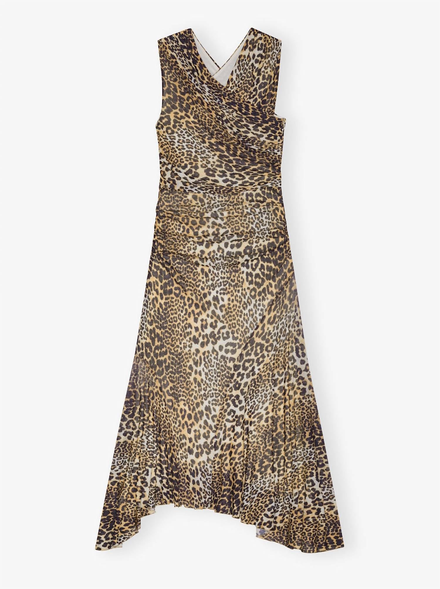 Um vestido que você vai usar em todas as estações. Combine-o com sua jaqueta jeans favorita para um look mais descontraído. O Vestido Longo Cruzado com Babados da GANNI é uma adição marcante ao seu guarda-roupa, apresentando um design sem mangas com estampa animal print em malha mesclada de oncinha. Este vestido evasê é habilmente confeccionado em 100% poliéster reciclado e apresenta um decote em V marcante, um recorte diferenciado nas costas e uma bainha assimétrica. Projetado e fabricado na Turquia, inclui um detalhe lateral franzido e fecho de zíper para um ajuste elegante e ajustado. Para cuidados, basta lavar na máquina com água fria para manter seu visual vibrante.