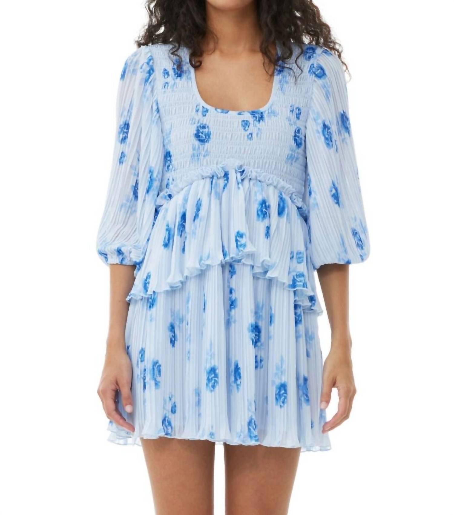 Um vestido curto e arejado para os dias mais quentes. Modelagem justa com corpete franzido na cintura. Decote em U. Saia com babados em camadas. Mangas largas na altura do cotovelo. Modelo fiel ao tamanho. 100% poliéster reciclado. Lavar à mão com cores semelhantes; secar na horizontal. Fabricado na Índia.