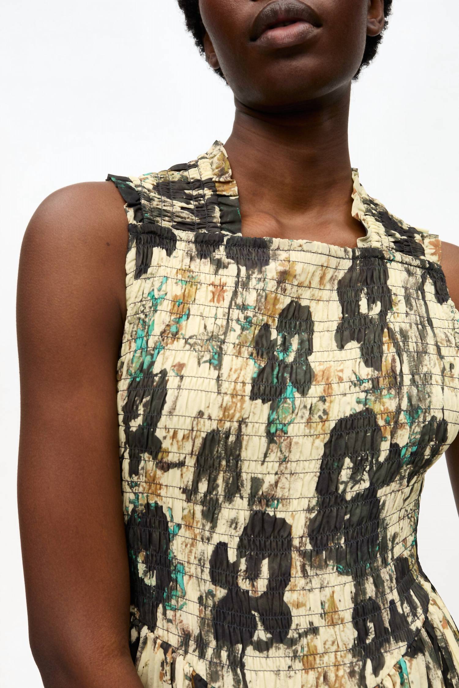 Abrace a elegância com o Vestido GANNI com Pregas Estampadas e Alças Midi em Afterglow, uma peça de destaque para qualquer guarda-roupa. Este vestido sem mangas apresenta um corte em A elegante, combinado com um elegante decote quadrado, totalmente confeccionado em 100% poliéster. Fabricado na Índia com um prático fecho de puxar, este vestido promete conforto e estilo. Instruções de cuidado: Lavagem à máquina em água fria e em temperatura ambiente para fácil manutenção.