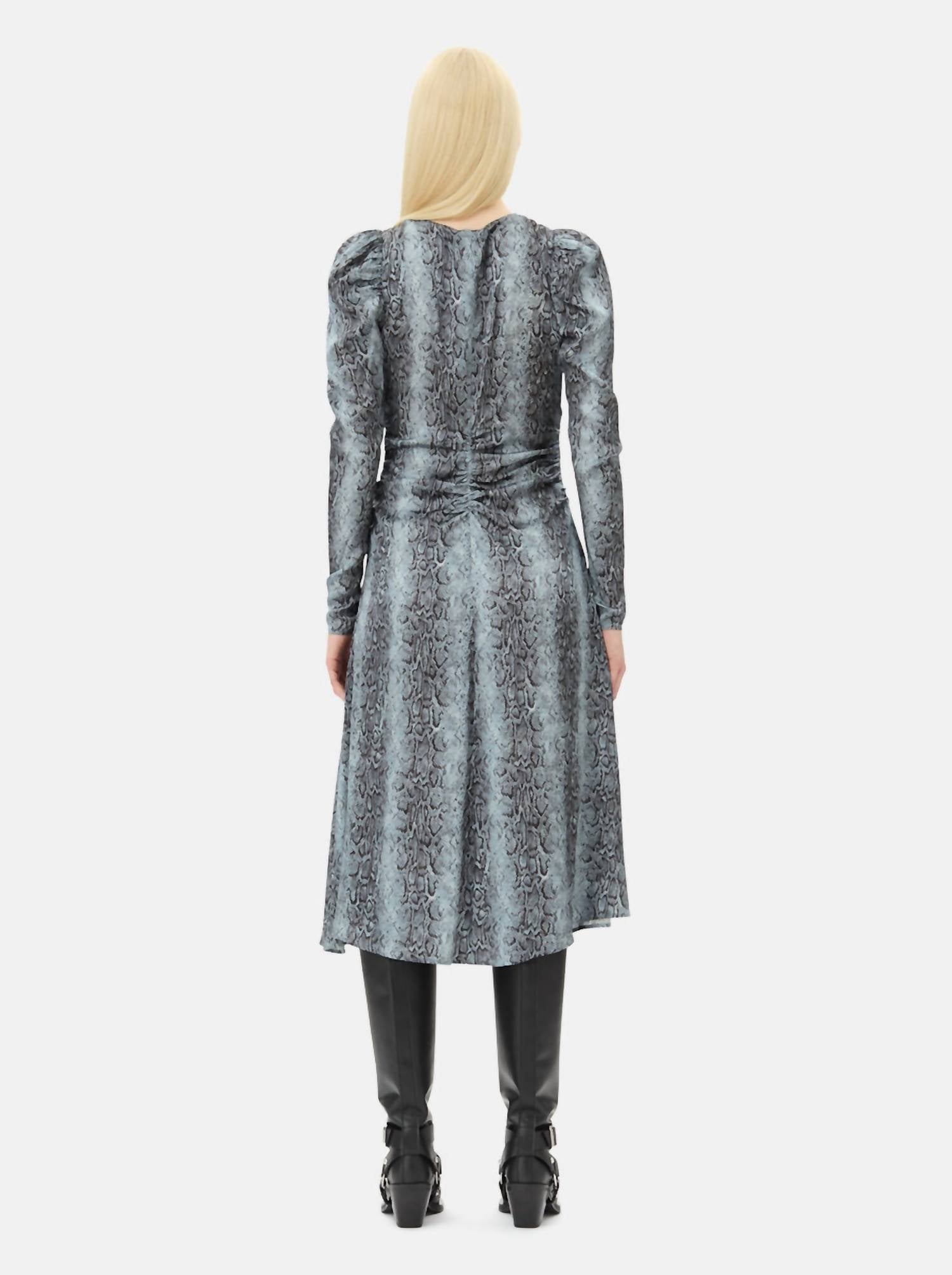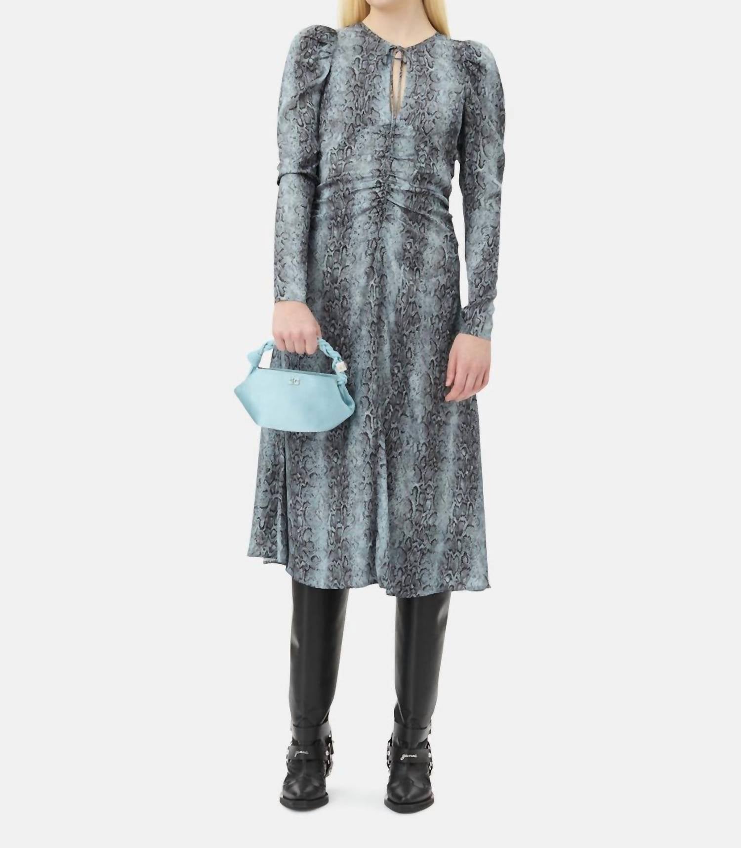 Bonito e confortável, este vestido de manga longa tem tudo. Vestido azul-celeste chique e estiloso. Apresenta elegantes mangas longas bufantes e um decote em V elegante com detalhe de gravata. Acentuado por franzidos ao longo do corpete para uma silhueta sofisticada. Confeccionado em uma mistura de 51% Viscose e 49% Elastano. Projetado para conforto com fecho de pressão. Fabricado na Turquia. Lavar à mão com água fria para manter sua aparência requintada.